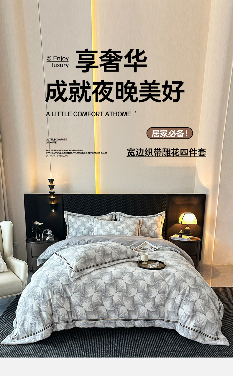 诺梵家纺 2025新款8.2斤宽边织带雕花绒牛奶绒四件套 巴洛克-灰