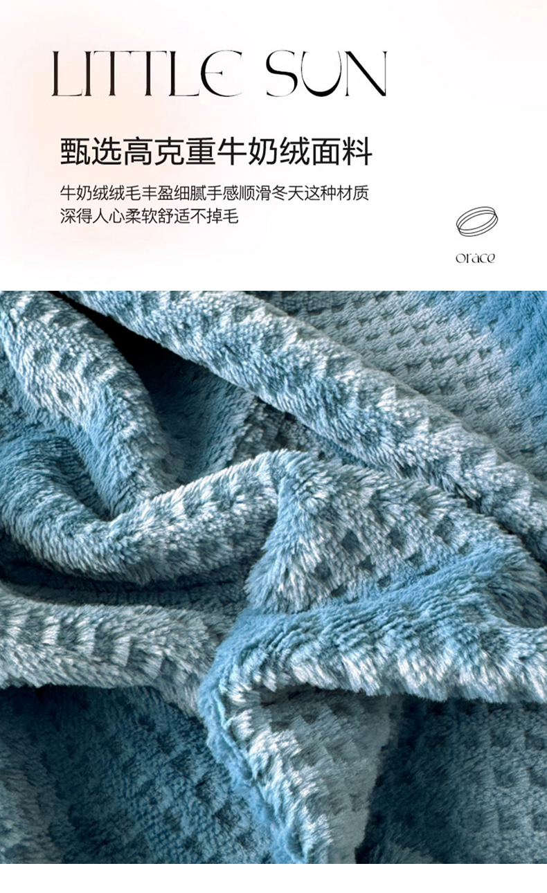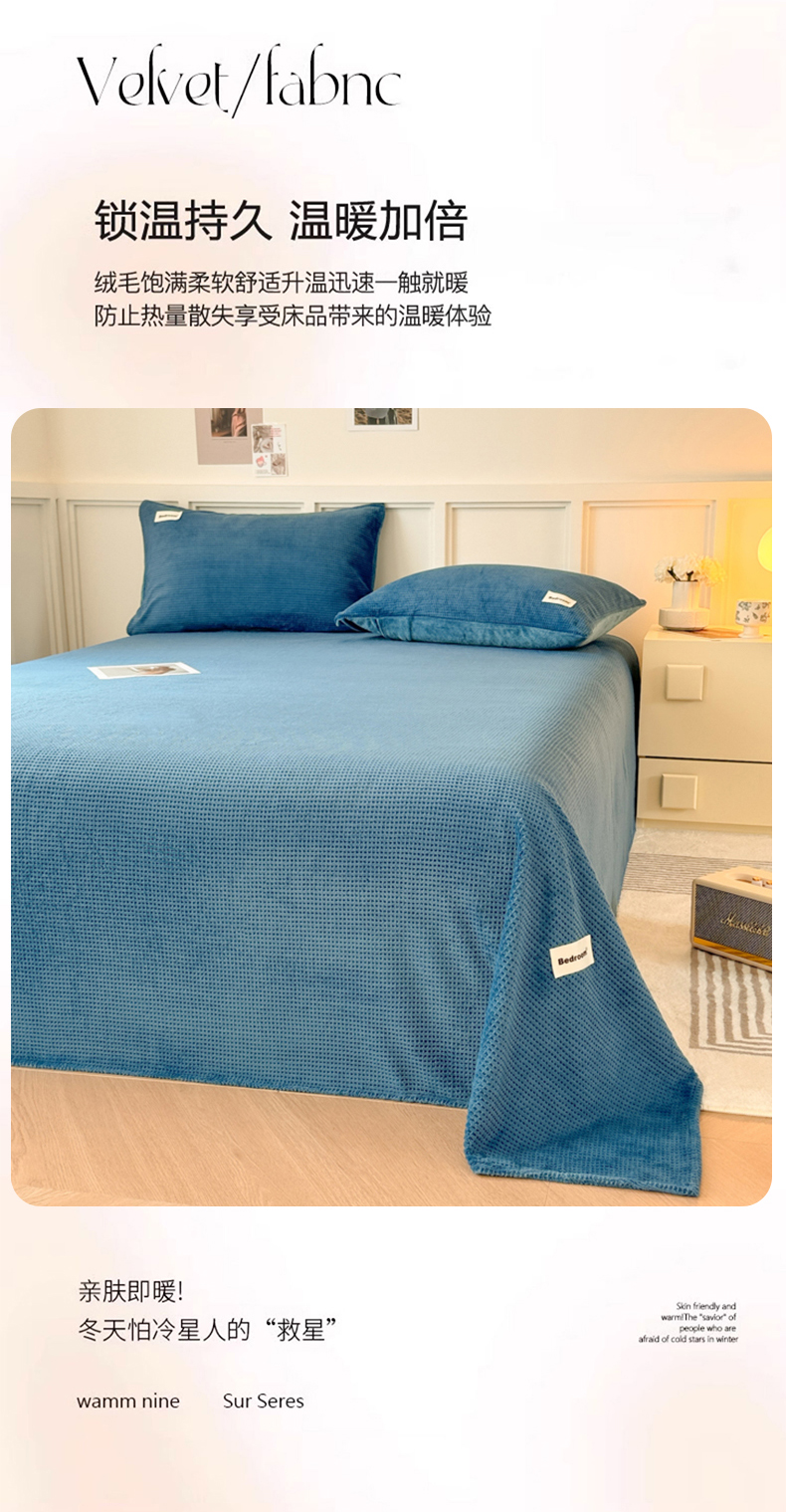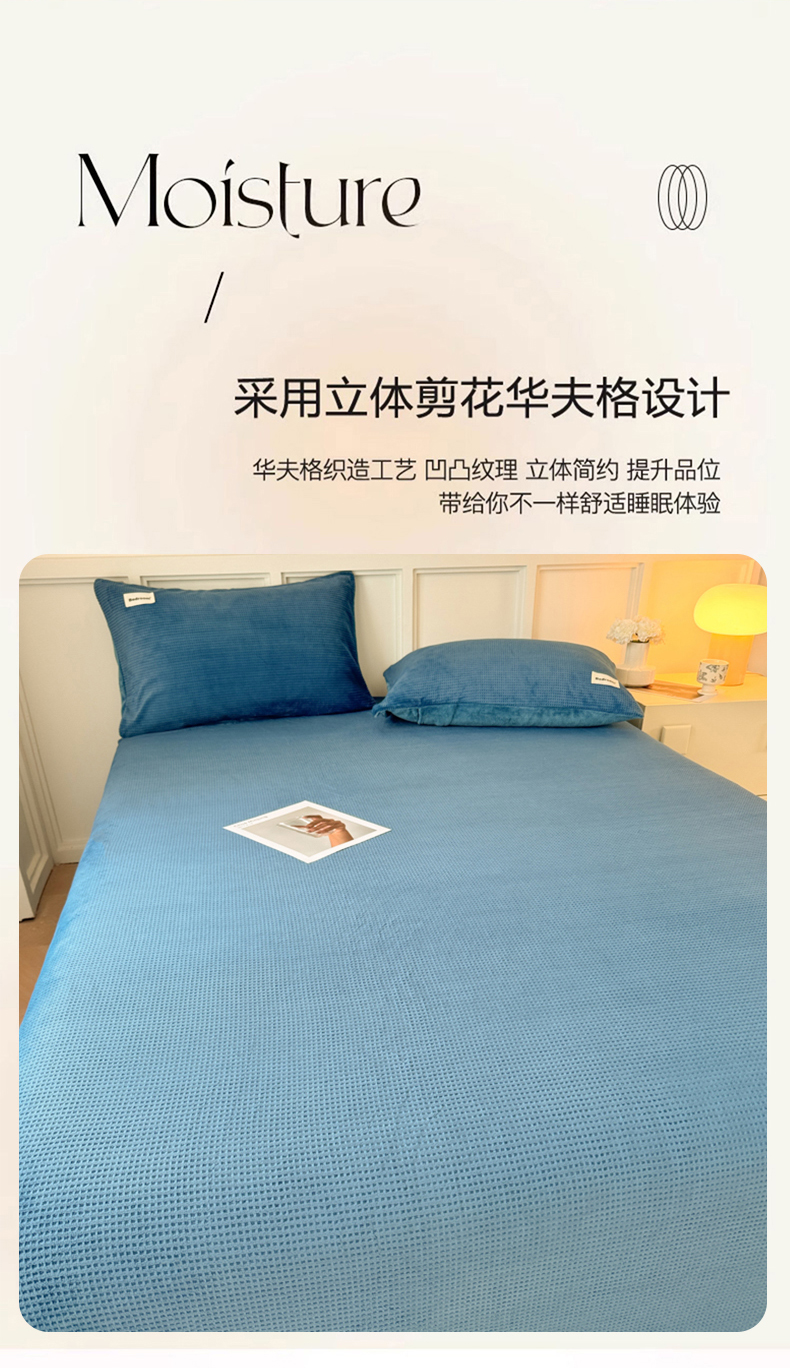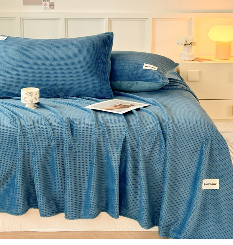 • 91家纺网 家纺一手货源 找家纺 眠博士 2025新款A类华夫格剪花牛奶绒床单多功能盖毯 剪花床单-靛青