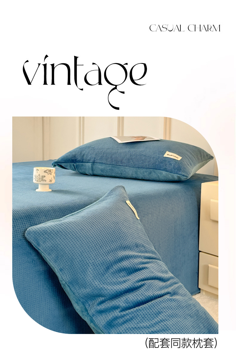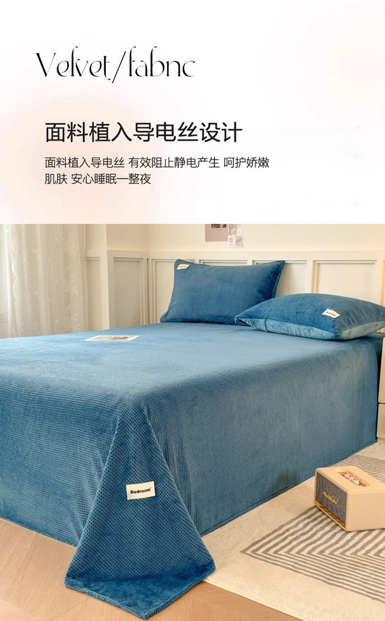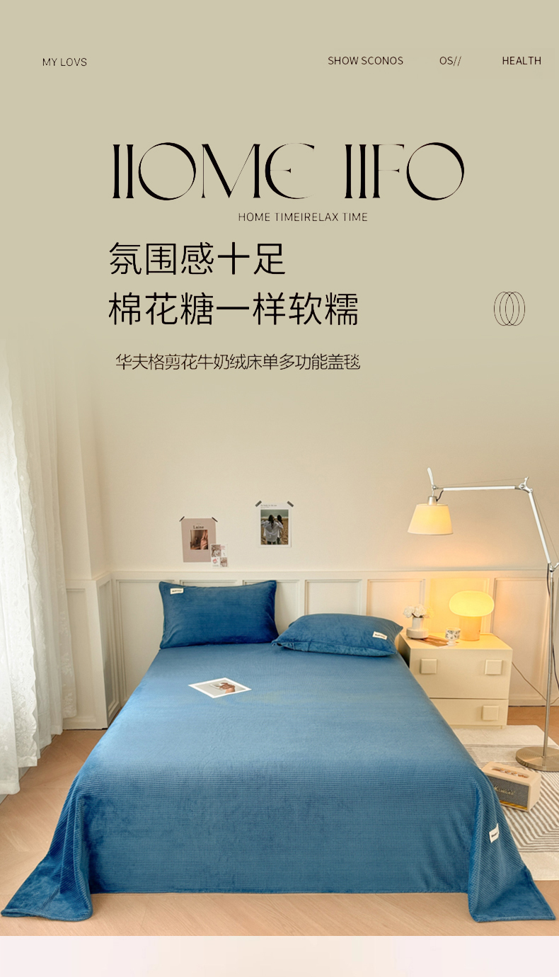 • 91家纺网 家纺一手货源 找家纺 眠博士 2025新款A类华夫格剪花牛奶绒床单多功能盖毯 剪花床单-靛青
