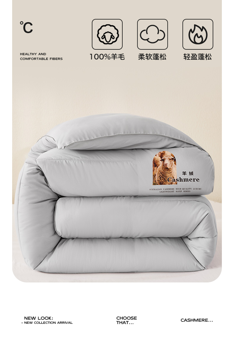 • 91家纺网 家纺一手货源 找家纺 品乐家纺 2025新款A类澳洲进口羊毛被被子被芯 雅致灰