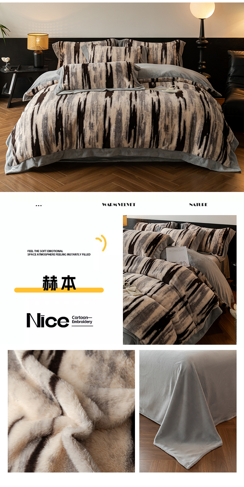 商品名称:启程家纺 2025新款A类加厚兔毛220克牛奶绒拼角四件套 蝴蝶飞飞