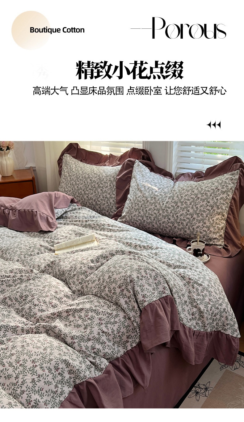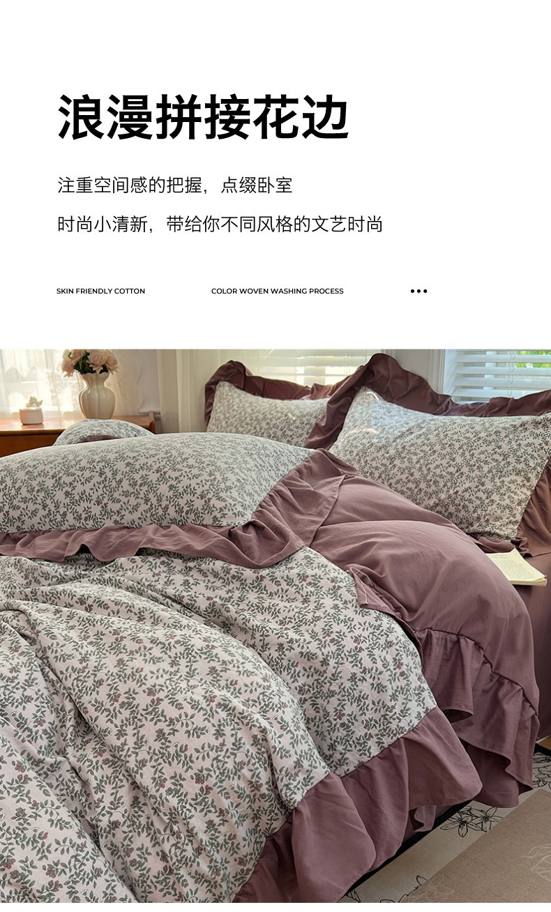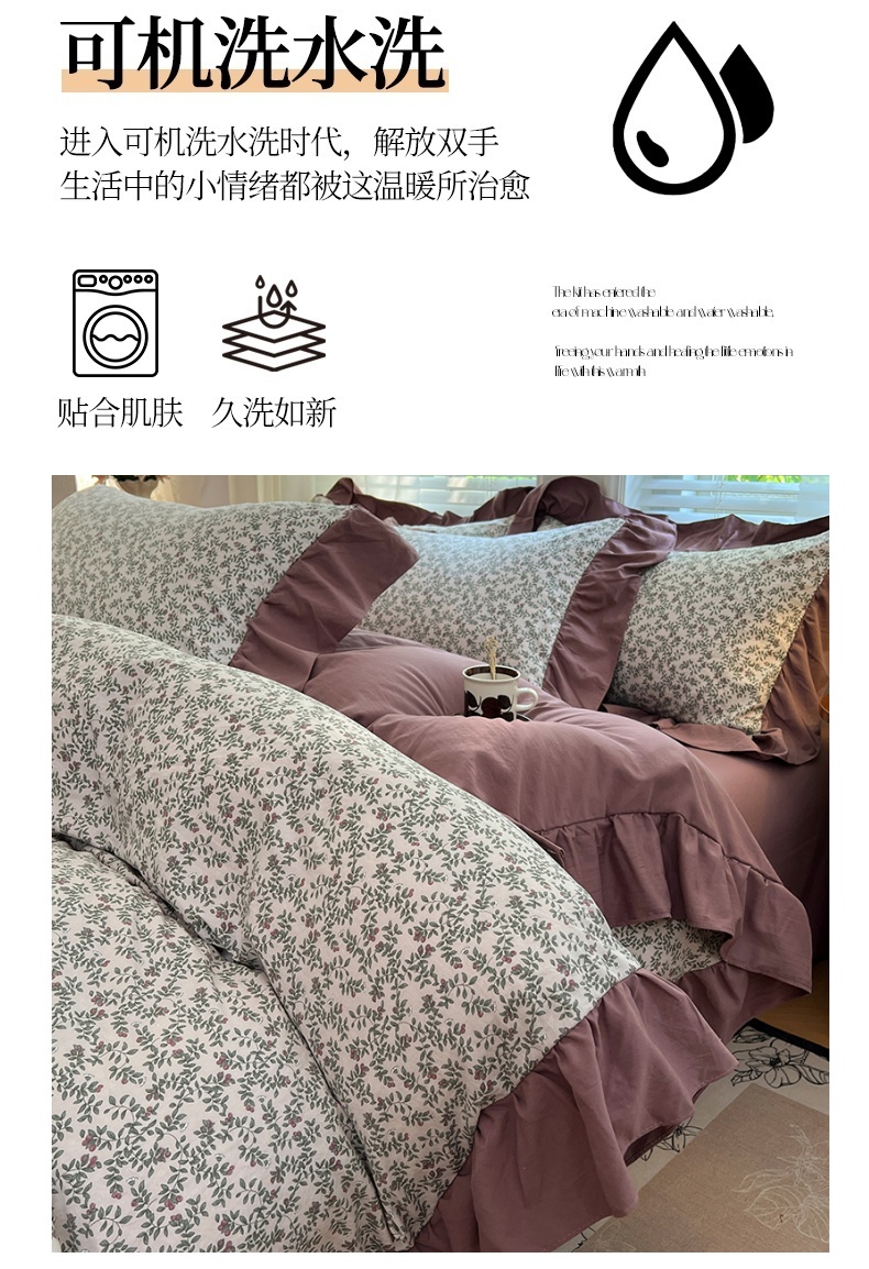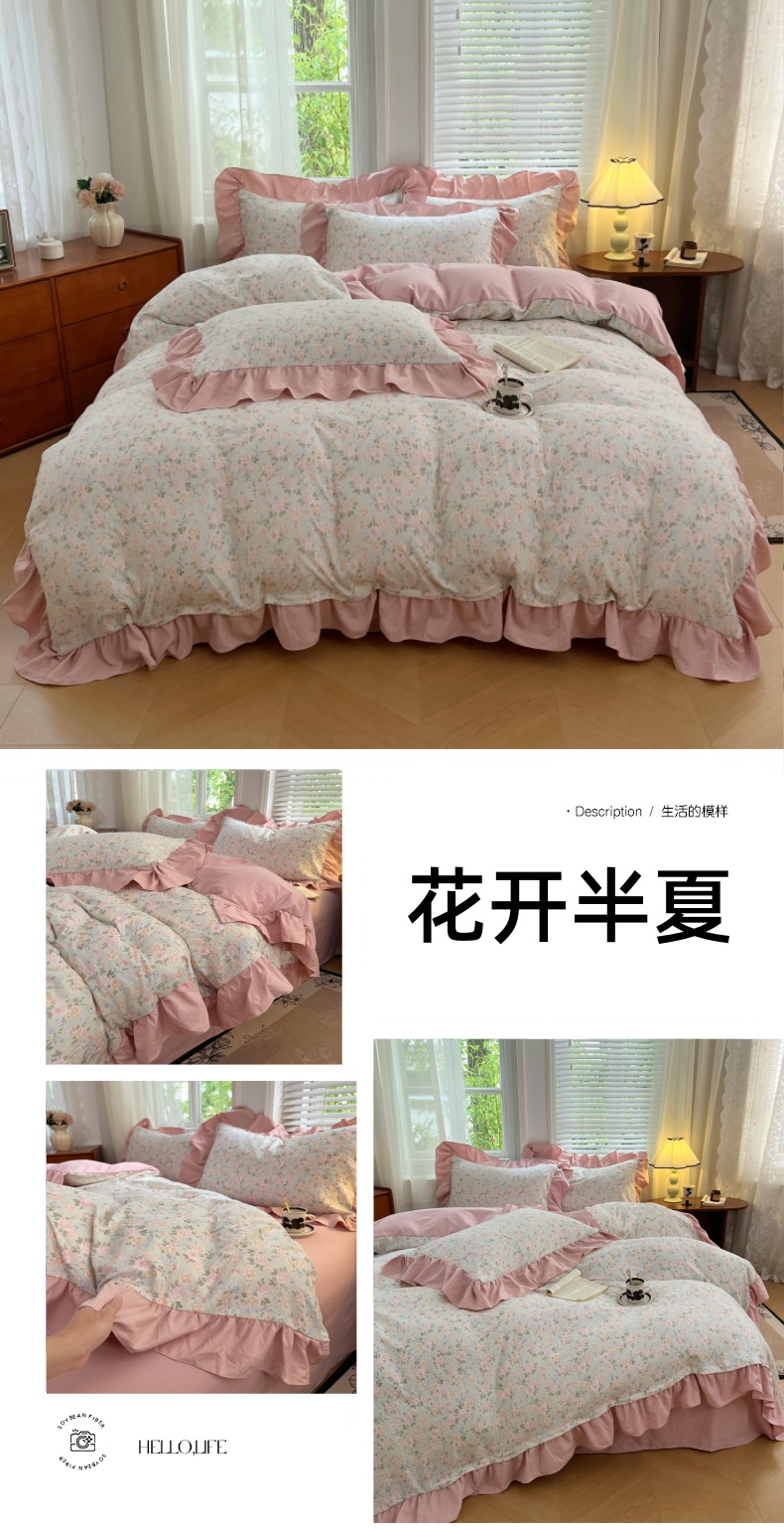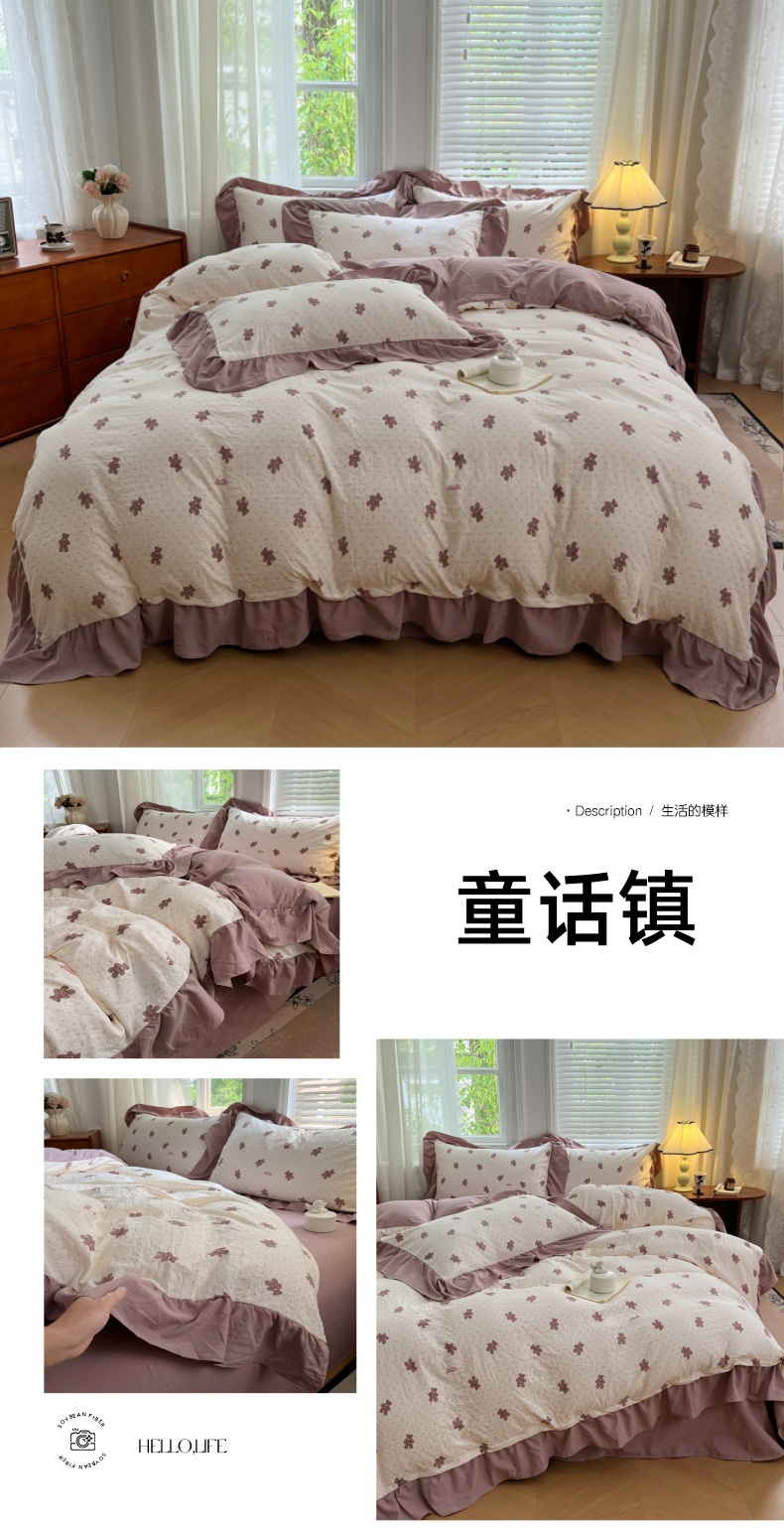 商品名称:梦舒羽 2025新款水洗珍珠棉花边四件套学生宿舍套件复古风四件套 盛夏