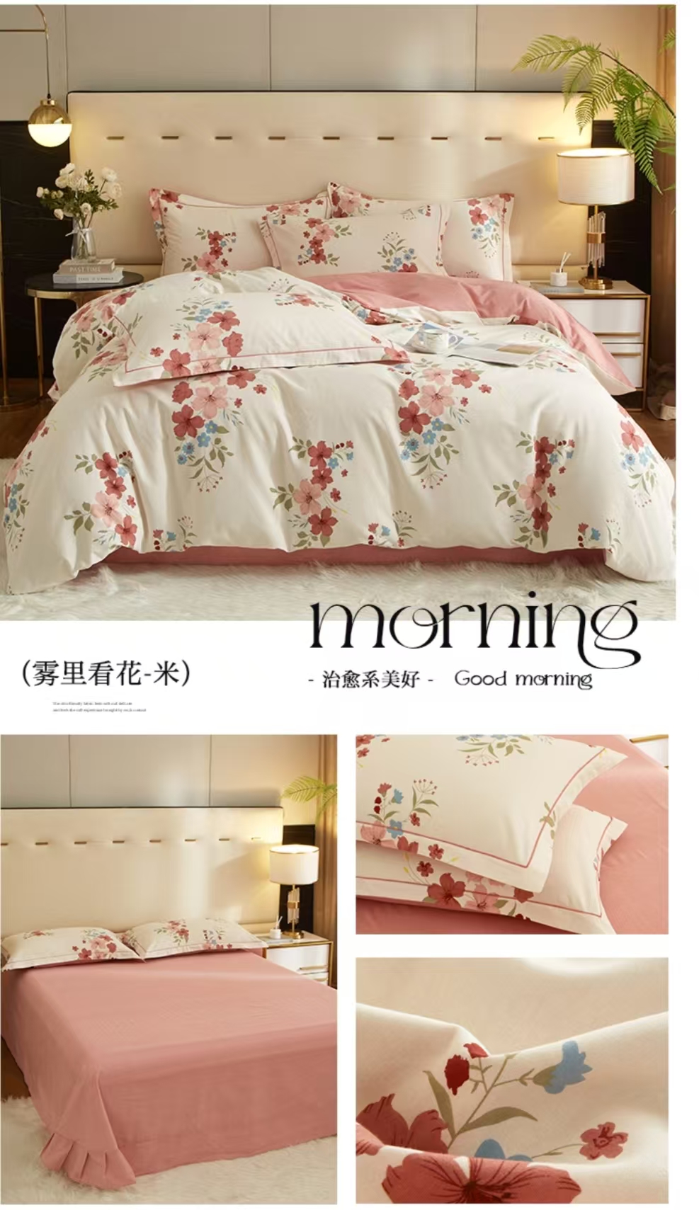 商品名称:昊翔家纺 2025新款100%全棉纯棉加厚磨毛四件套 花枝漫漫-粉
