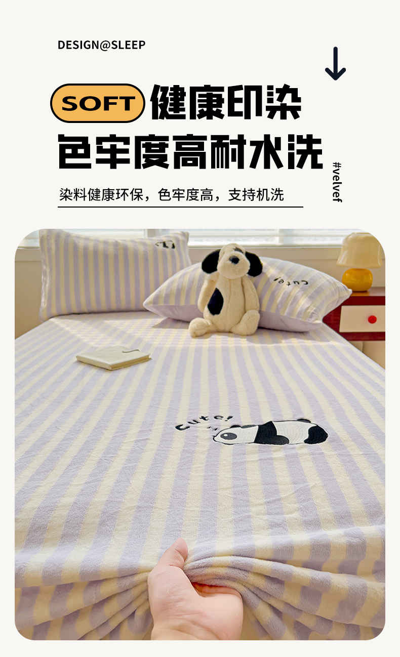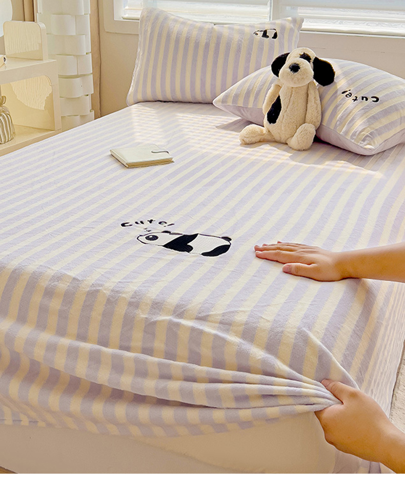 商品名称:繁花家居 2025新款经典条纹系列绣花牛奶绒单品床单床笠床单床笠单件 床单-紫条熊猫