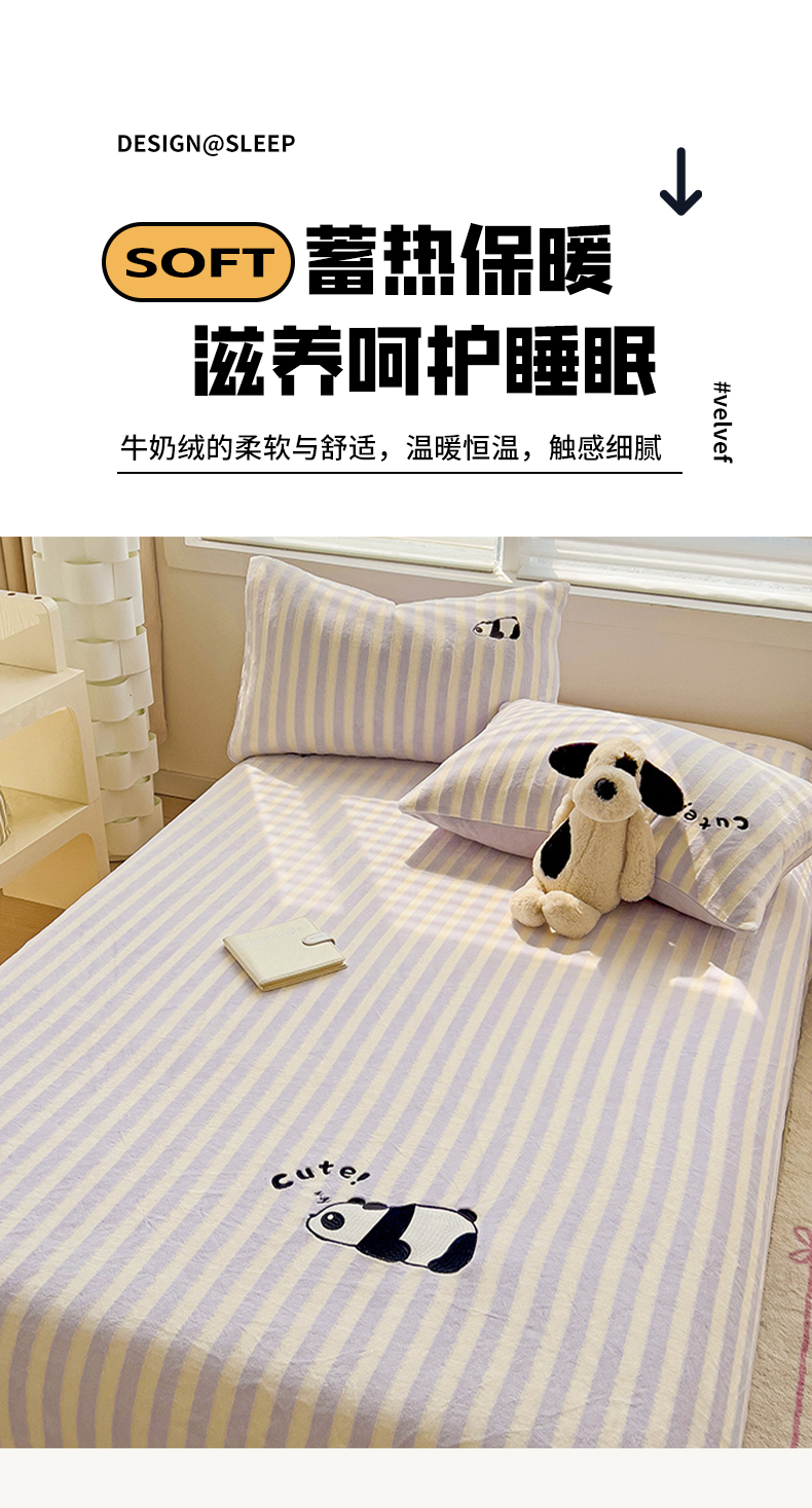 繁花家居 2025新款经典条纹系列绣花牛奶绒单品床单床笠床单床笠单件 床单-紫条熊猫