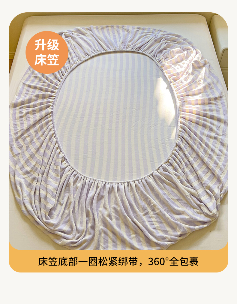 (总)繁花家居 2025软爆高克重水洗棉床单床笠单件 学生季跑量款,彩虹条,粉方格,绿方格,奶盖波波,苹果绿格,紫方格,组合图仅供展示
