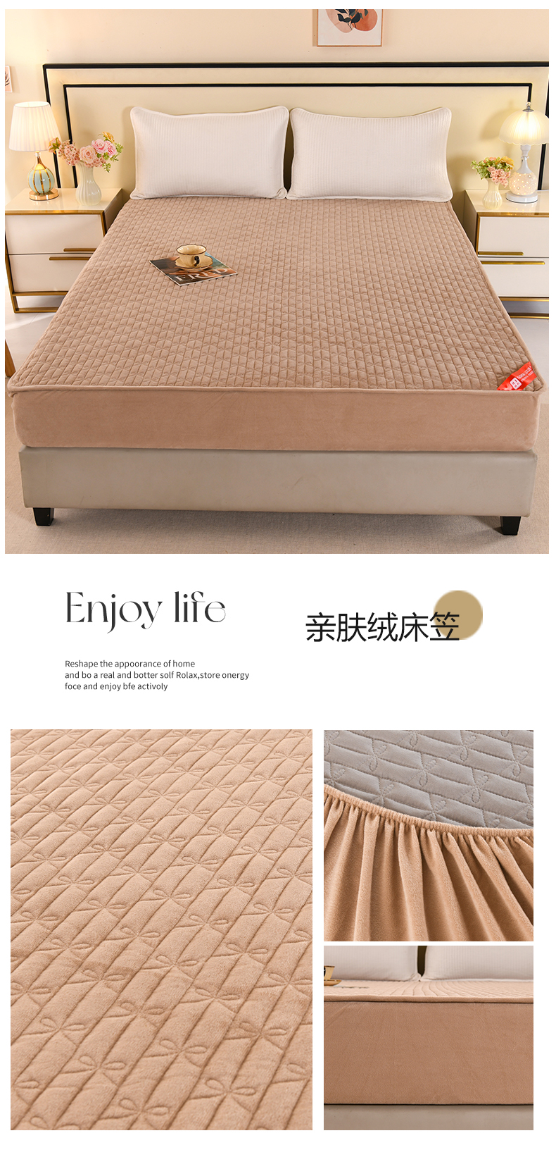 商品名称:栩裕纺织 2025新款亲肤绒夹棉保暖床笠 浅咖