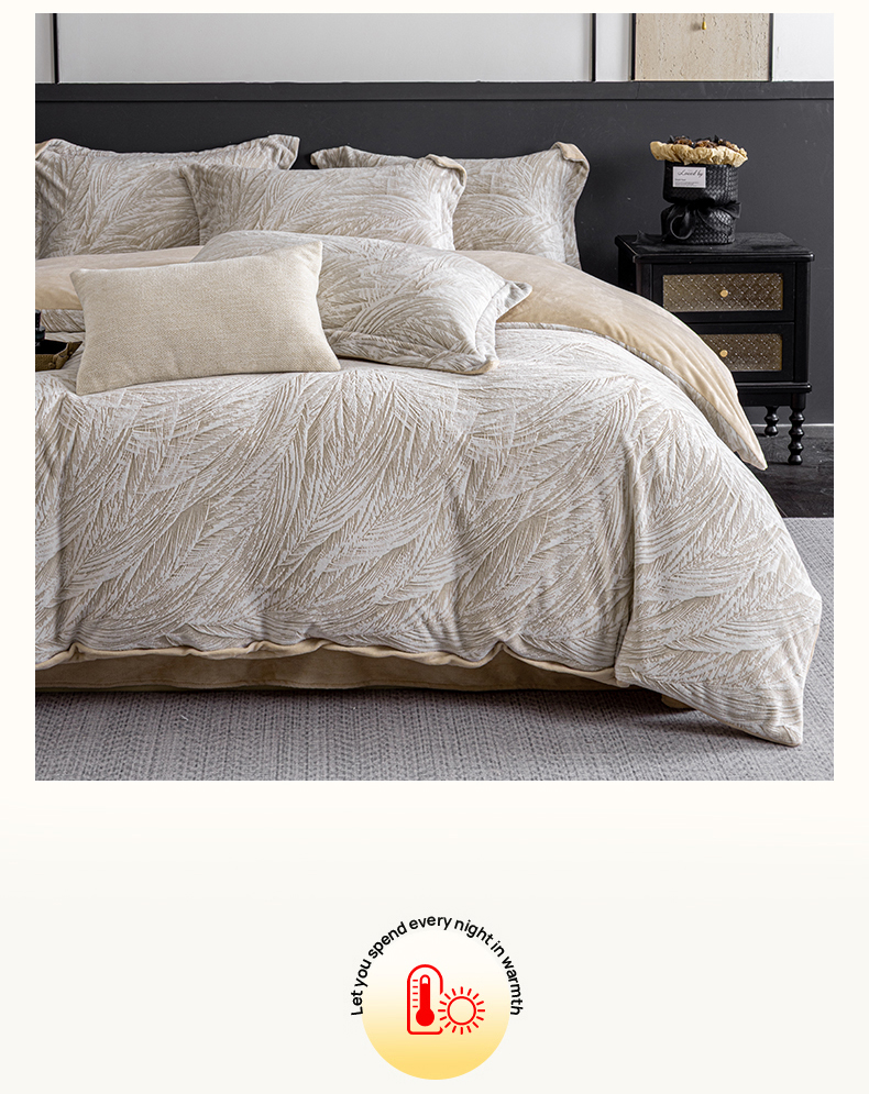 商品名称:罗优家纺 2025新款牛奶绒雕花绒四件套 芦苇-咖