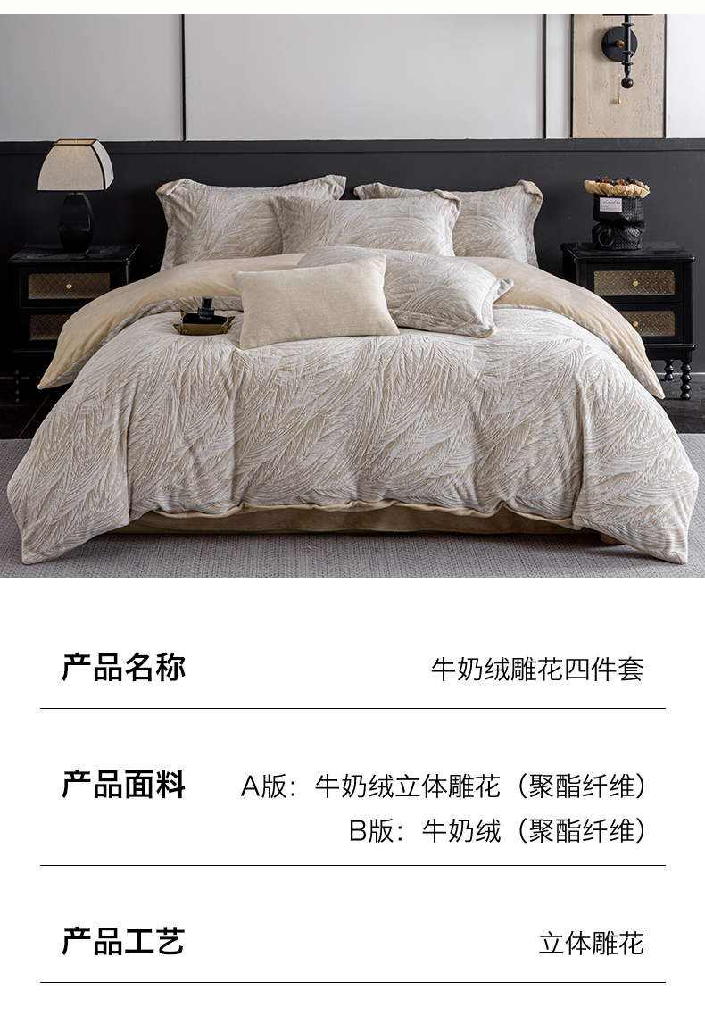 (总)罗优家纺 2025新款牛奶绒雕花绒四件套,蝶光萦绕,冬日暖阳-粉,冬日暖阳-灰,芳华绮丽-粉,芳华绮丽-蓝,花间蝶舞,菱形-棕,芦苇-粉,芦苇-咖,芦苇花,南瓜派对,飘叶-绿,飘叶-紫,时尚格韵,叙境深咖