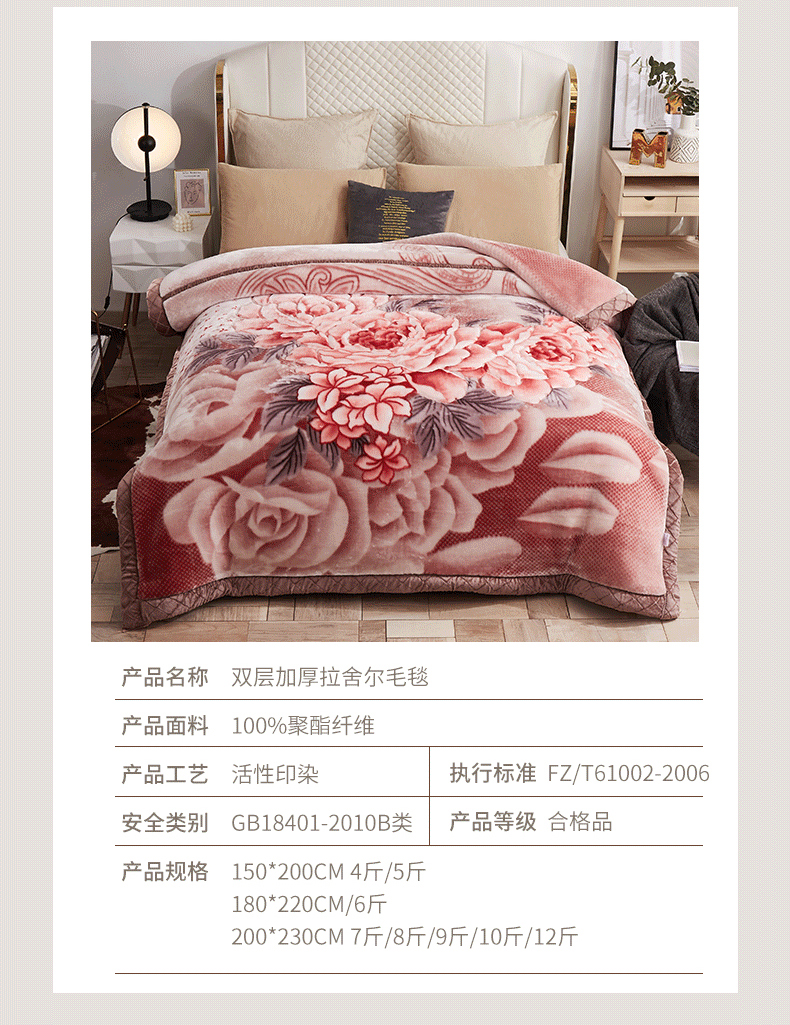 当前位置: 91家纺网 > 商品网购 > 毛毯休闲毯绒毯 > 毛毯 > 雅诗帛 【2025年新款】双层加厚冬季毛毯拉舍尔毛毯加绒特厚婚庆结婚送礼毯子盖毯珊瑚绒 牡丹仙子-豆沙
