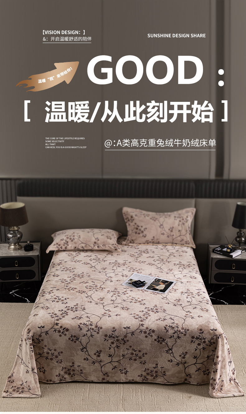 商品名称:锦罗绣 2025新款全消光兔绒300克牛奶绒床单 好眠时刻