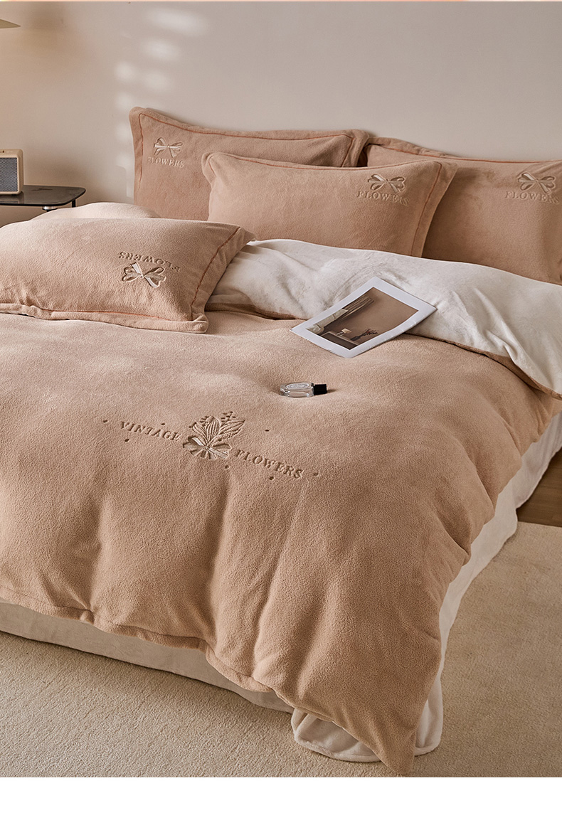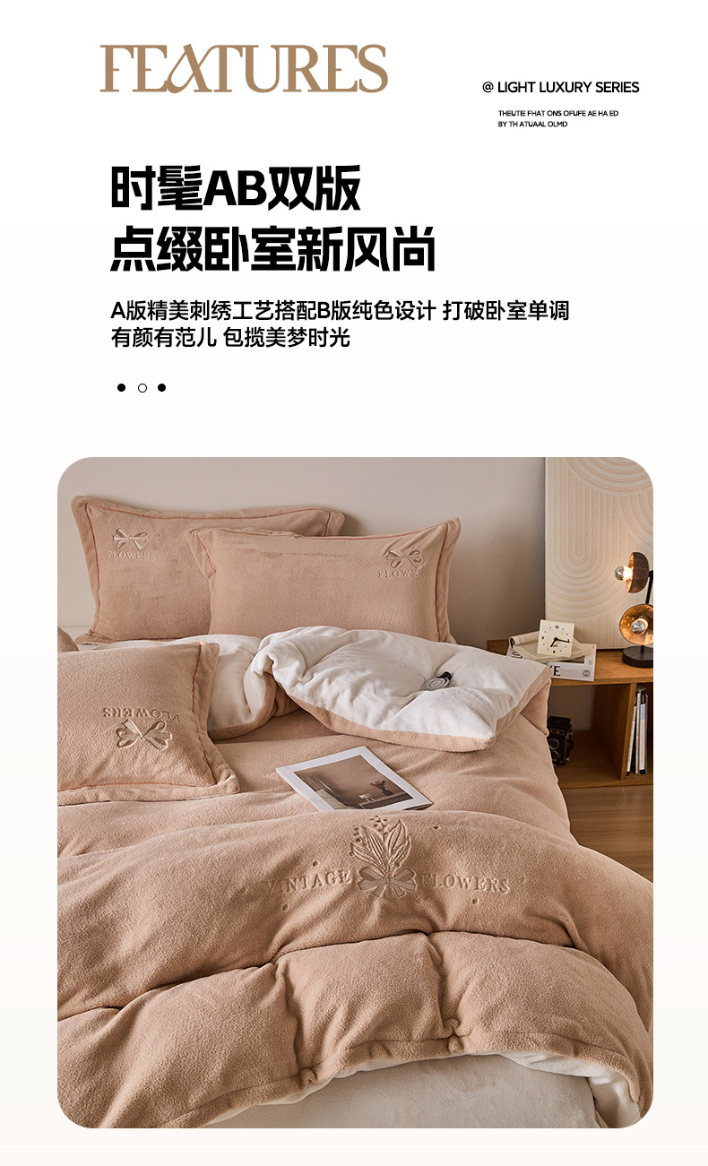 当前位置: 91家纺网 > 商品网购 > 床品套件 > 四件套 > 其它四件套 > 锦罗绣 2025新款雪尼绒艾尼绒230克全消光绣花系列四件套 卡其+米白