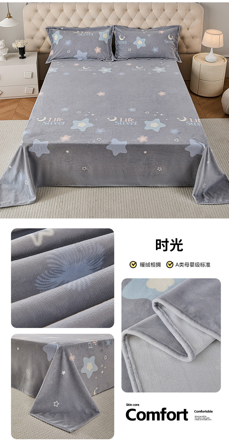 商品名称:锦罗绣 2025新款230克牛奶绒印花单床单 樱结绮梦
