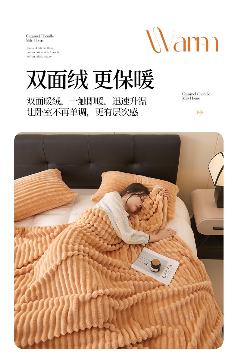 畅畅家纺 2025新款春秋冬兔毛绒宽抽条纯色软糯亲肤毛毯盖毯 豆沙色