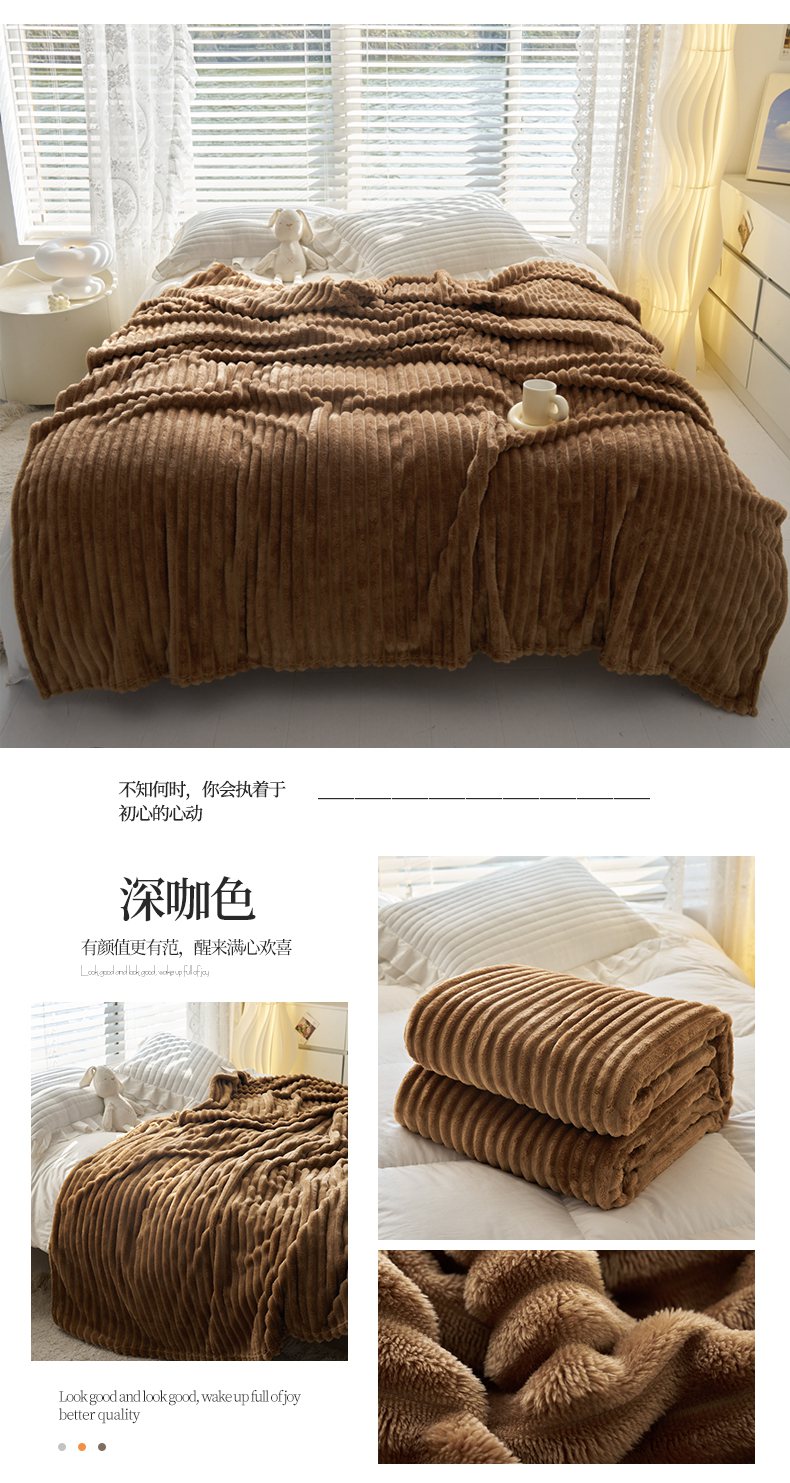 商品名称:畅畅家纺 2025新款春秋冬兔毛绒宽抽条纯色软糯亲肤毛毯盖毯 豆沙色