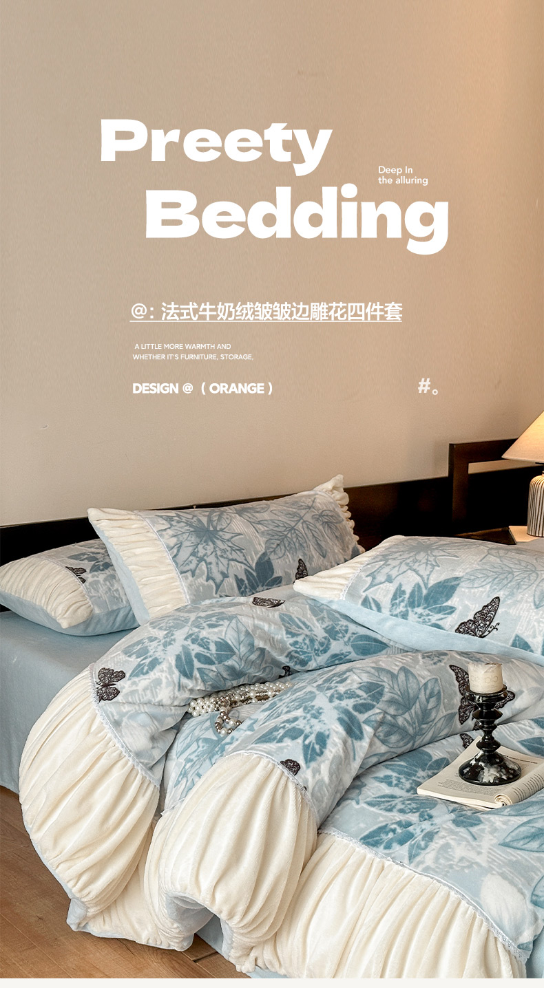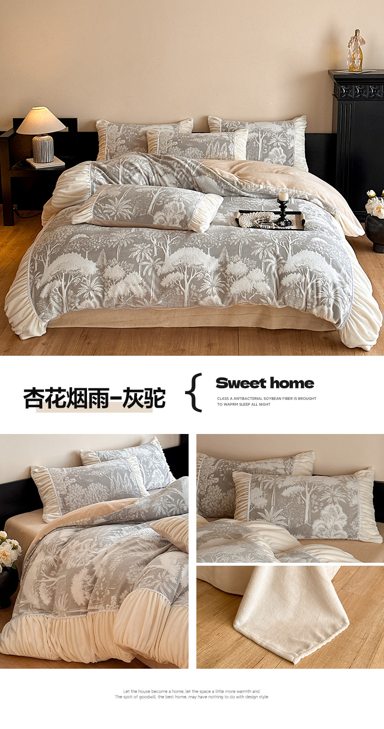 (总)索飞特家纺 2025新款秋冬法式牛奶绒皱皱边雕花四件套,杏花烟雨-灰驼,夏花之梦-粉,夏花之梦-卡其,夏花之梦-兰,杏花烟雨-粉,杏花烟雨-兰