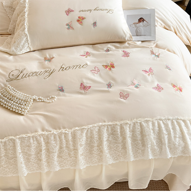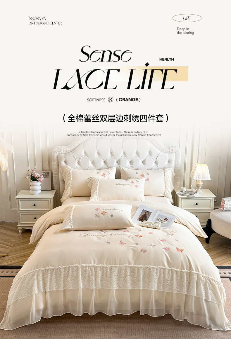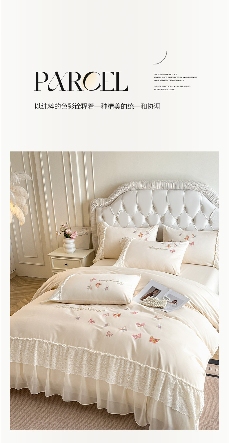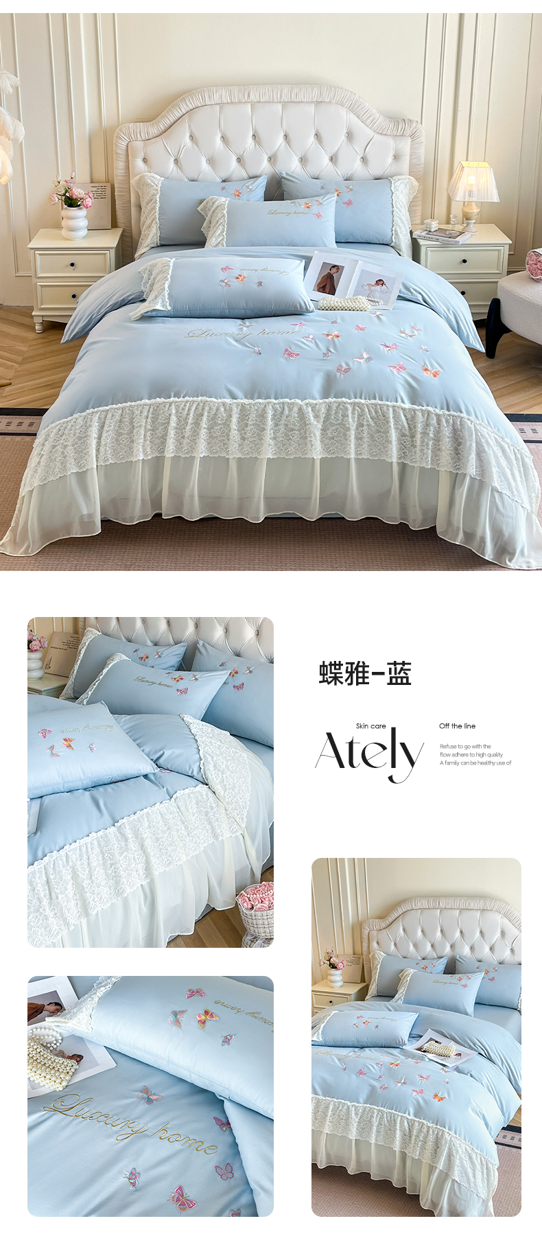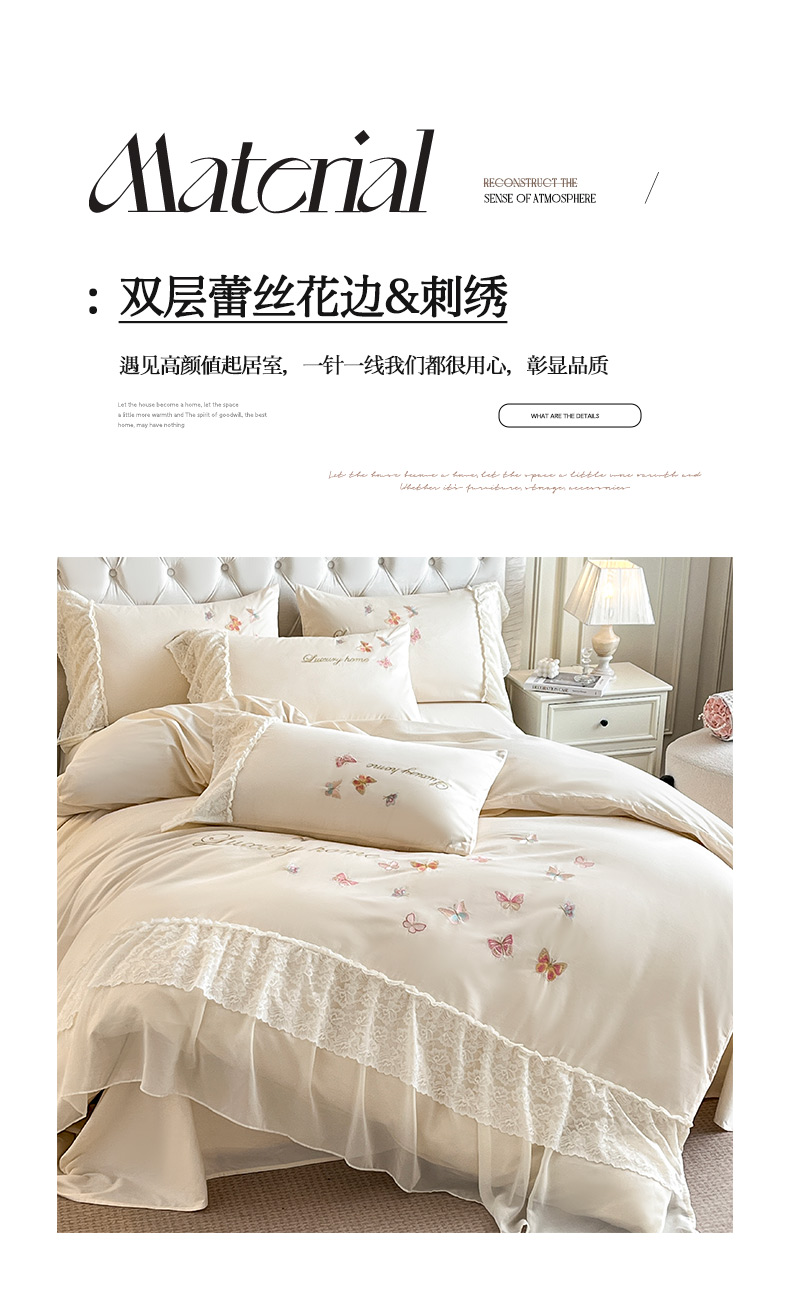 (总)索飞特家纺 2025新款全棉蕾丝双层边刺绣四件套(蝶雅),蝶雅-白,蝶雅-蒂芙兰,蝶雅-粉,蝶雅-蓝,蝶雅-燕麦,蝶雅-紫灰