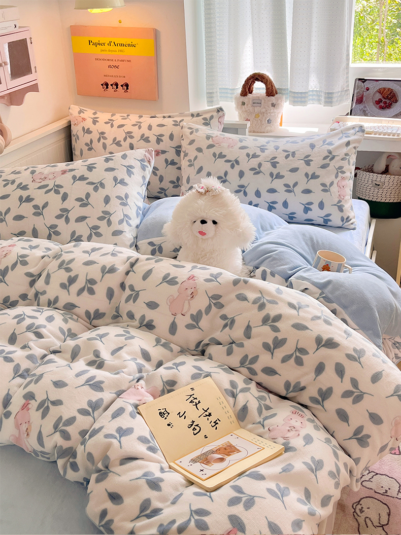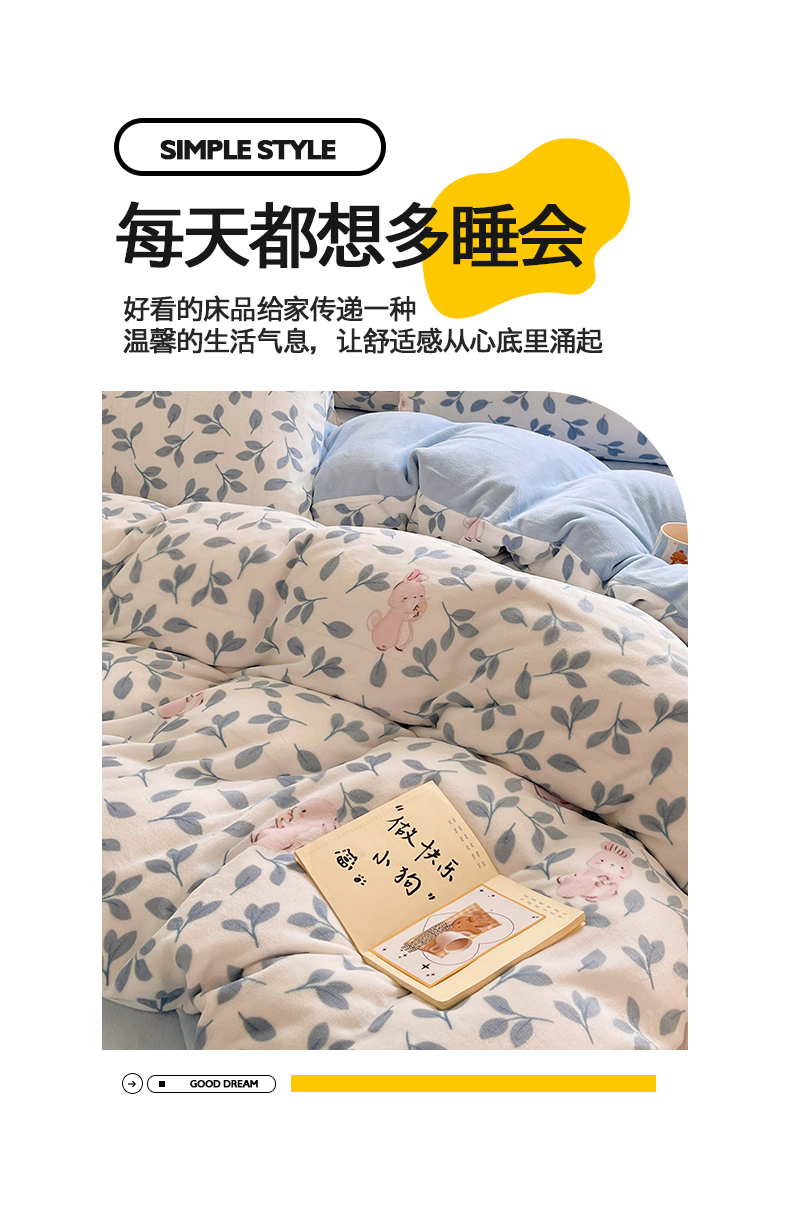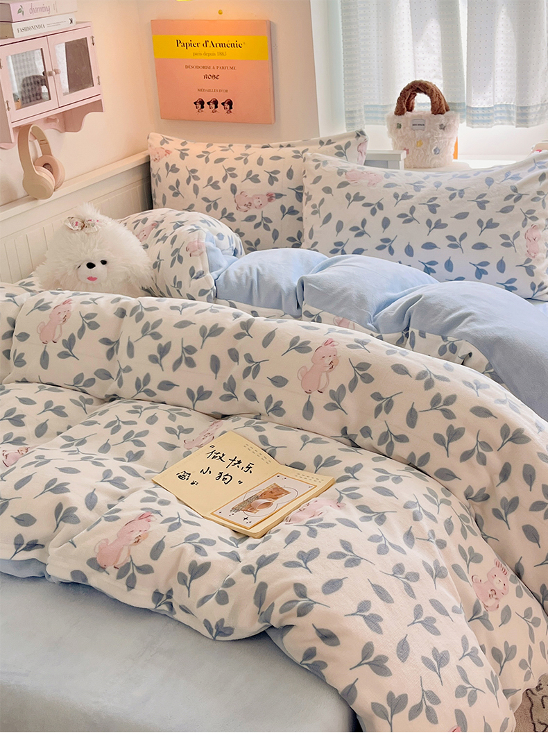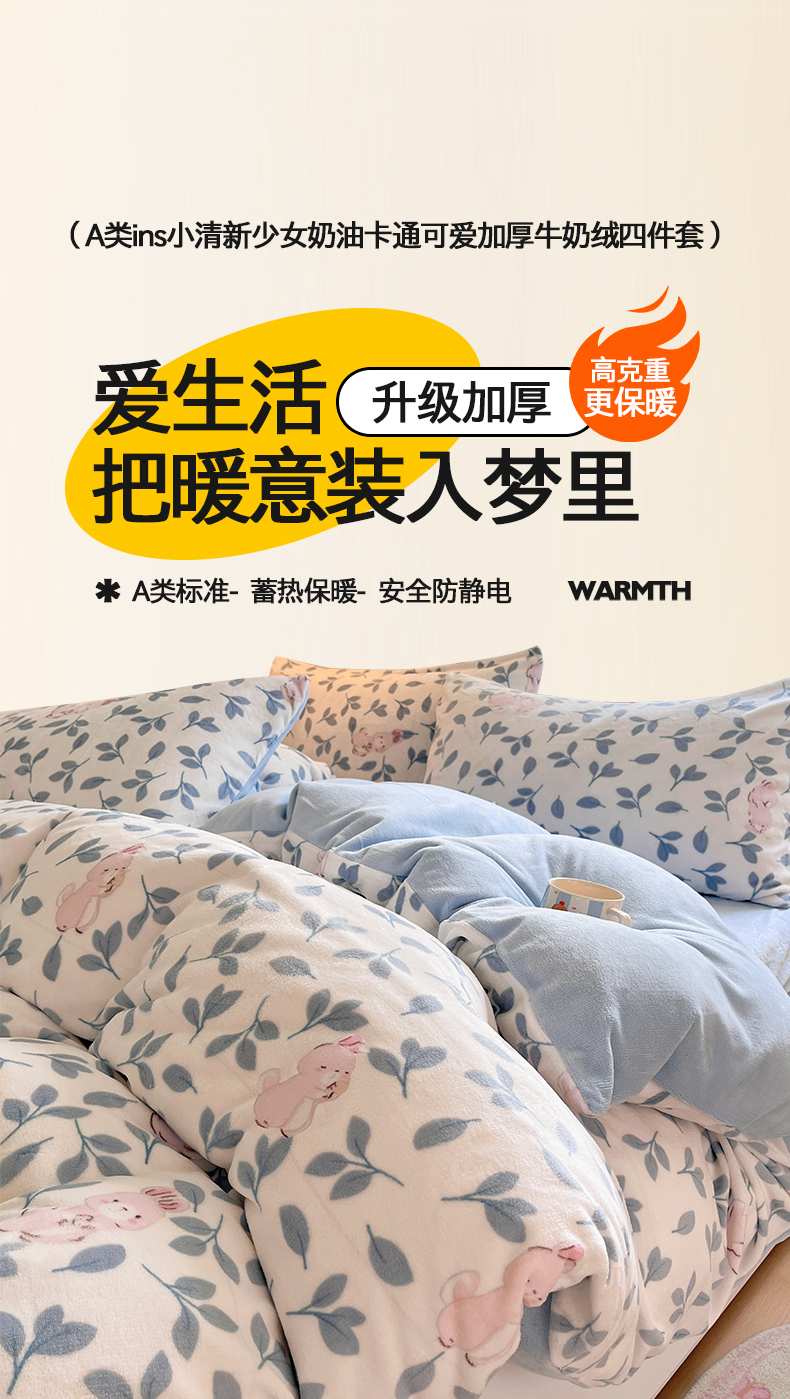 金爱家 2025新款A类ins小清新少女奶油卡通可爱加厚牛奶绒四件套 绒-萌萌兔