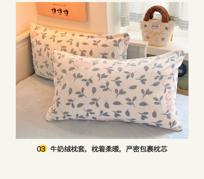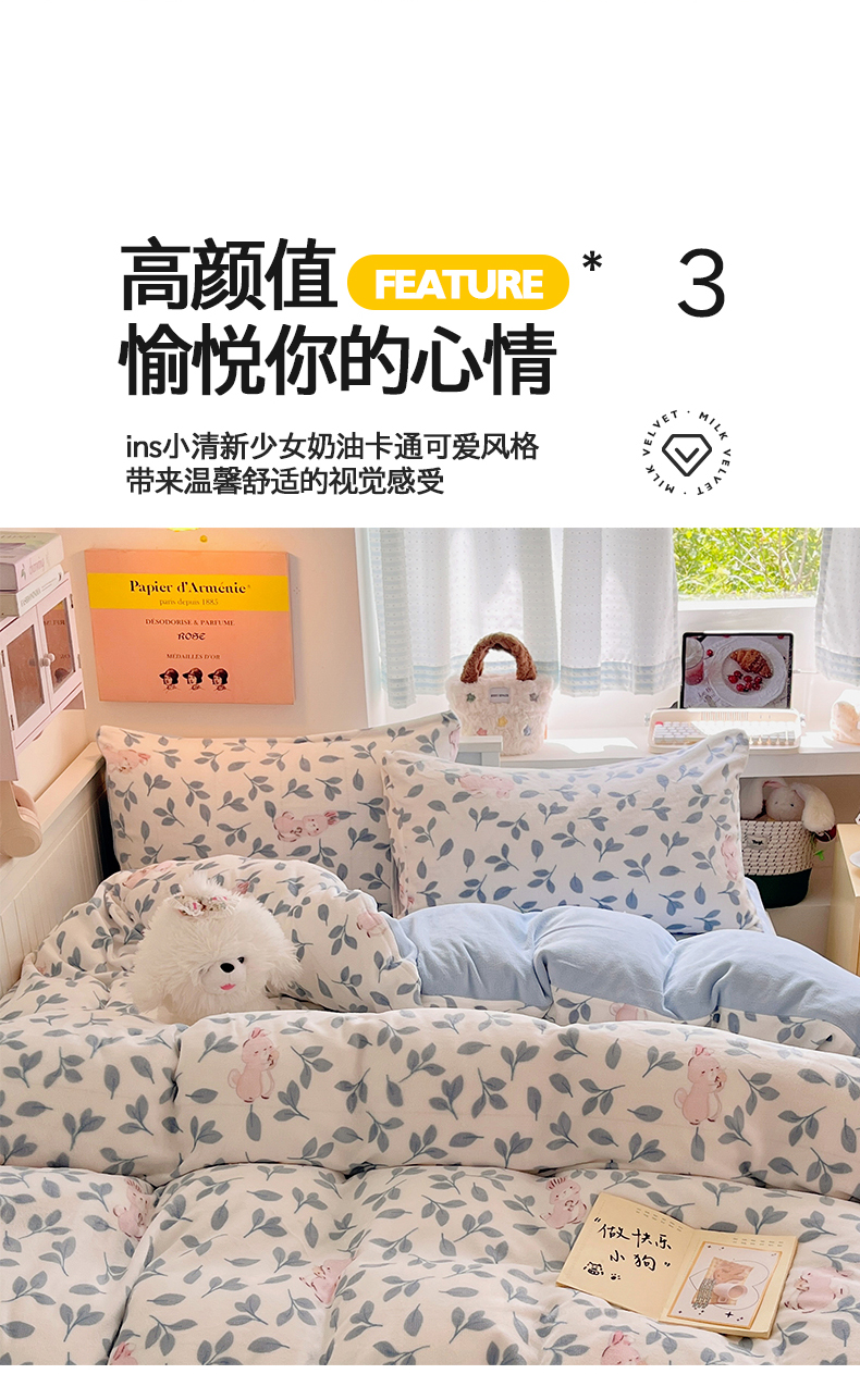 商品名称:金爱家 2025新款A类ins小清新少女奶油卡通可爱加厚牛奶绒四件套 绒-萌萌兔