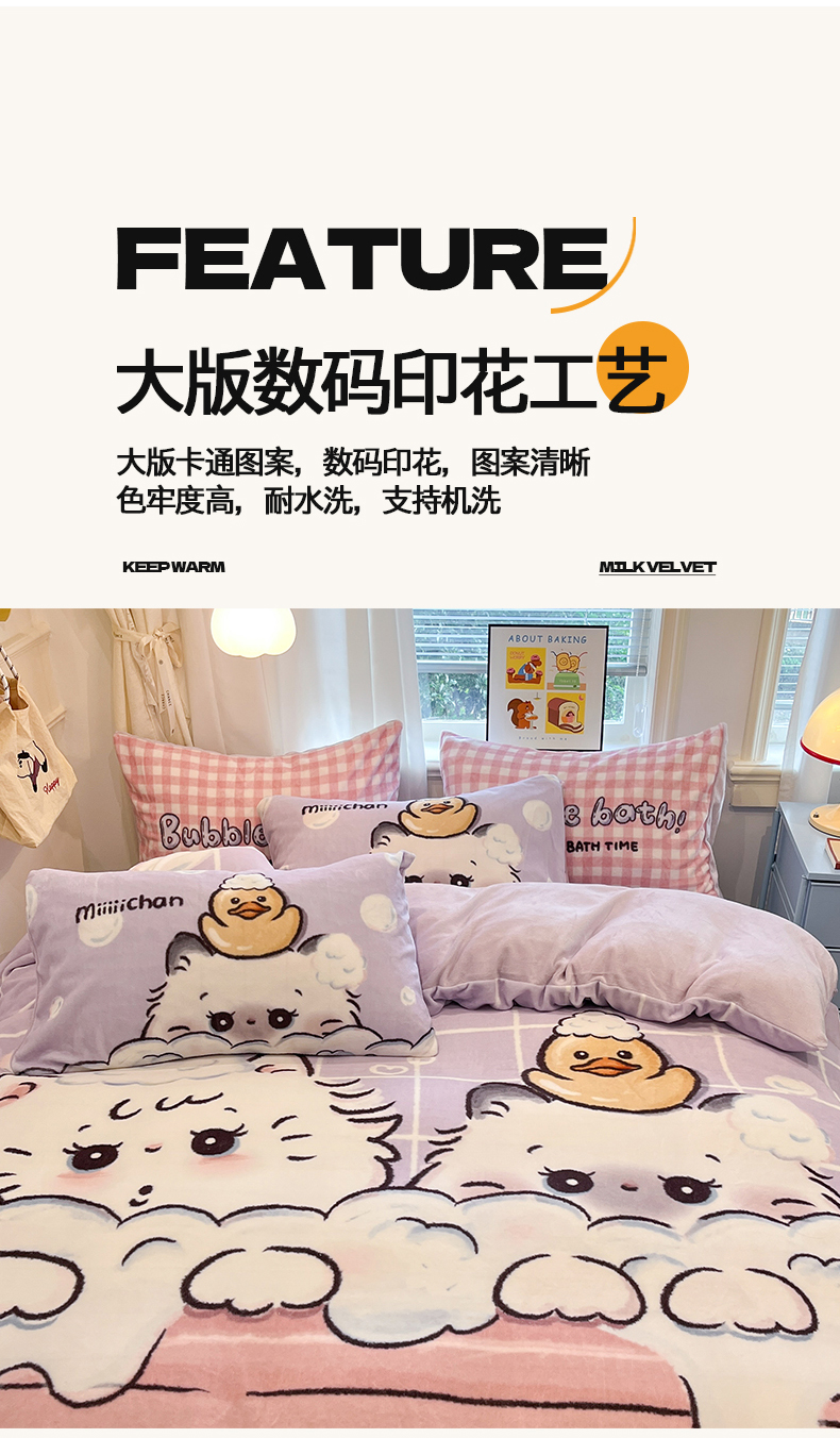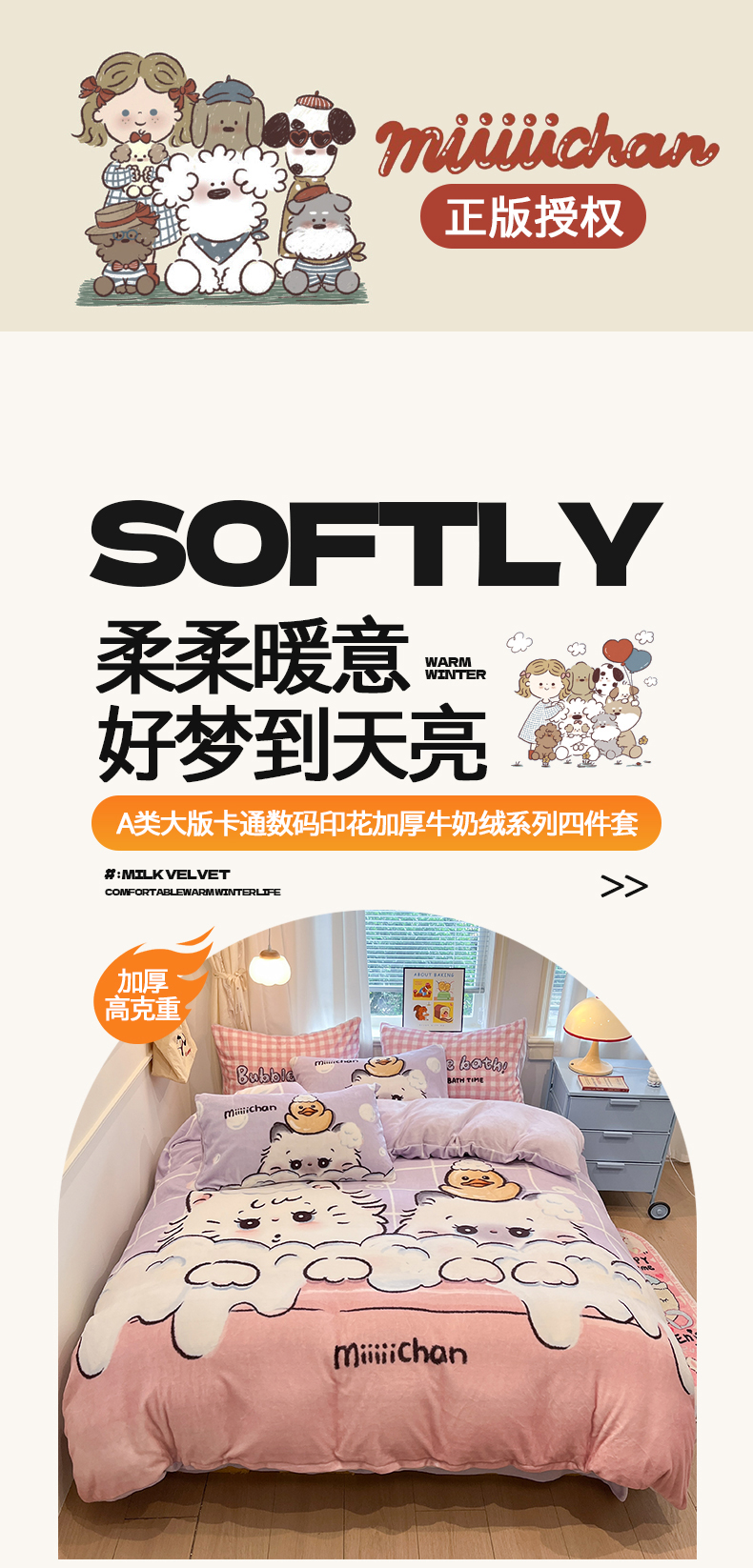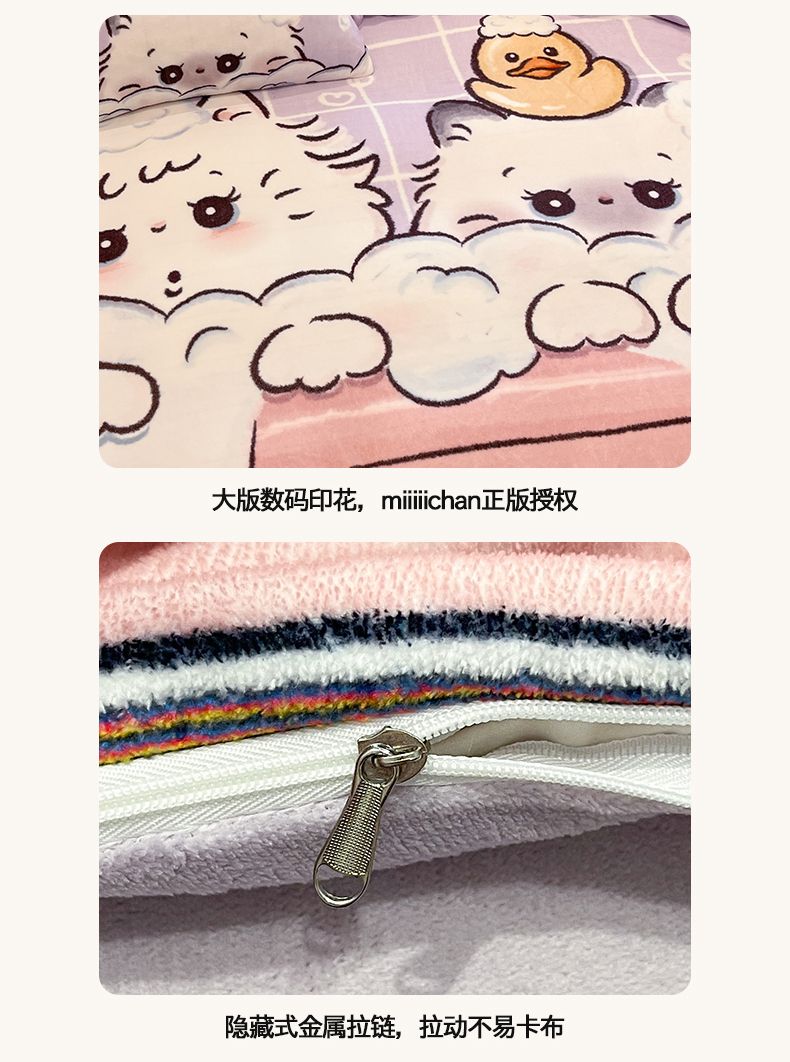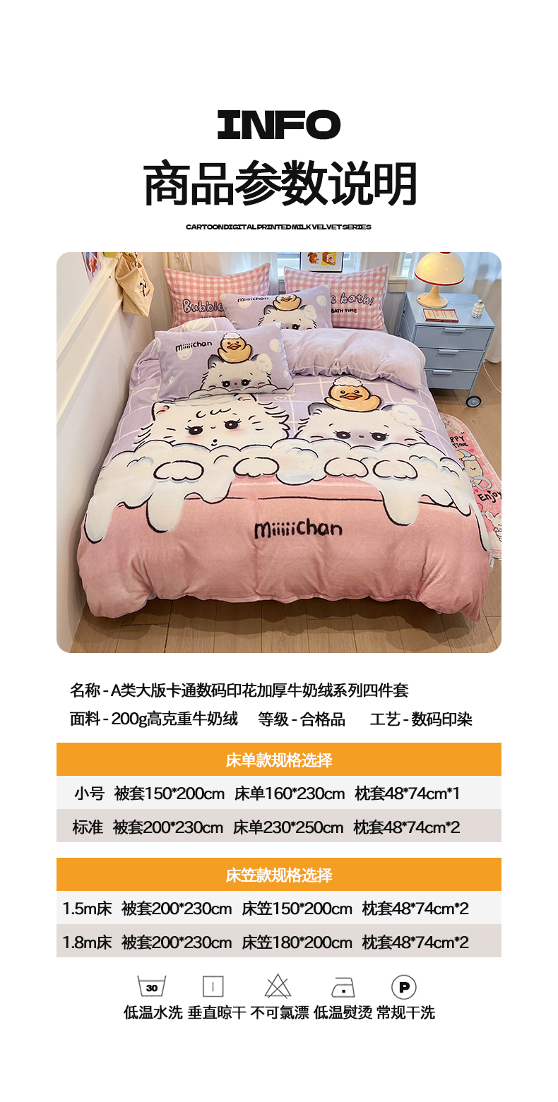 当前位置: 91家纺网 > 商品网购 > 床品套件 > 四件套 > 牛奶绒四件套 > 金爱家 2025新品A类正版授权miiiiichan咪酱大版卡通数码印花加厚牛奶绒系列四件套 绒大版-咪酱泡泡猫咪