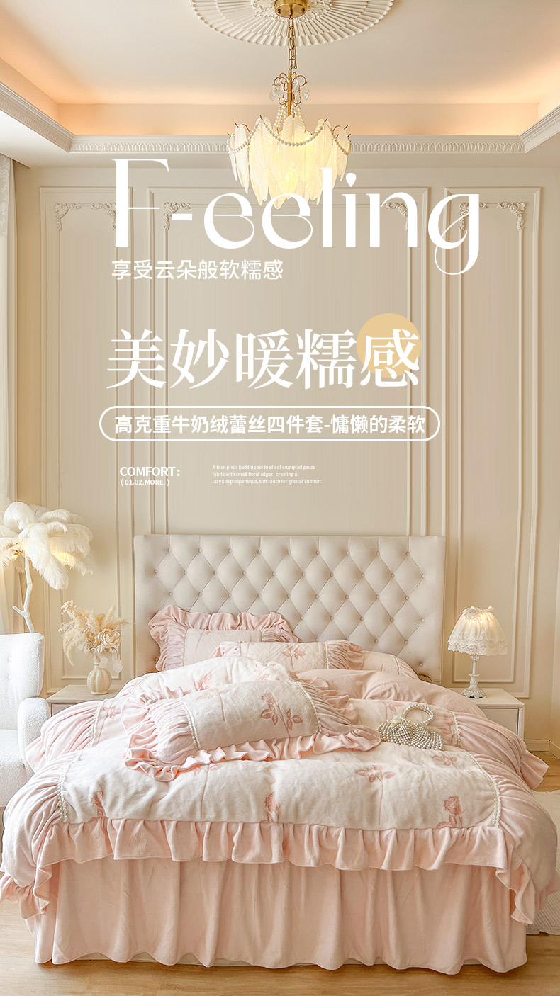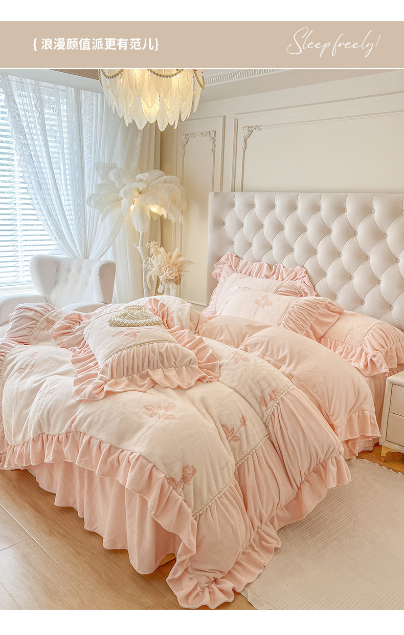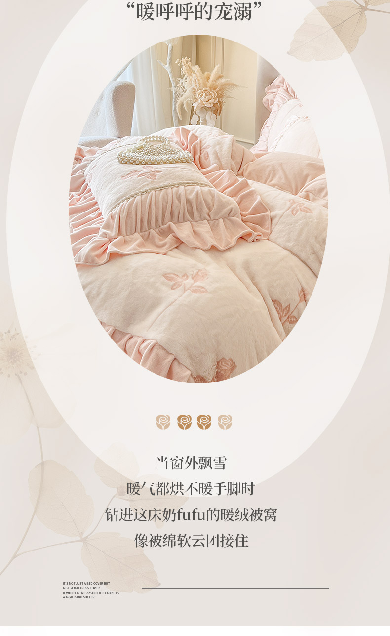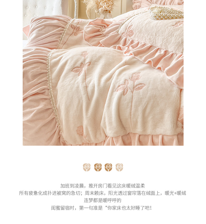 当前位置: 91家纺网 > 商品网购 > 床品套件 > 四件套 > 牛奶绒四件套 > (总)亲亲公主 2025新款加厚高克重牛奶绒法式公主风四件套-热恋玫瑰
