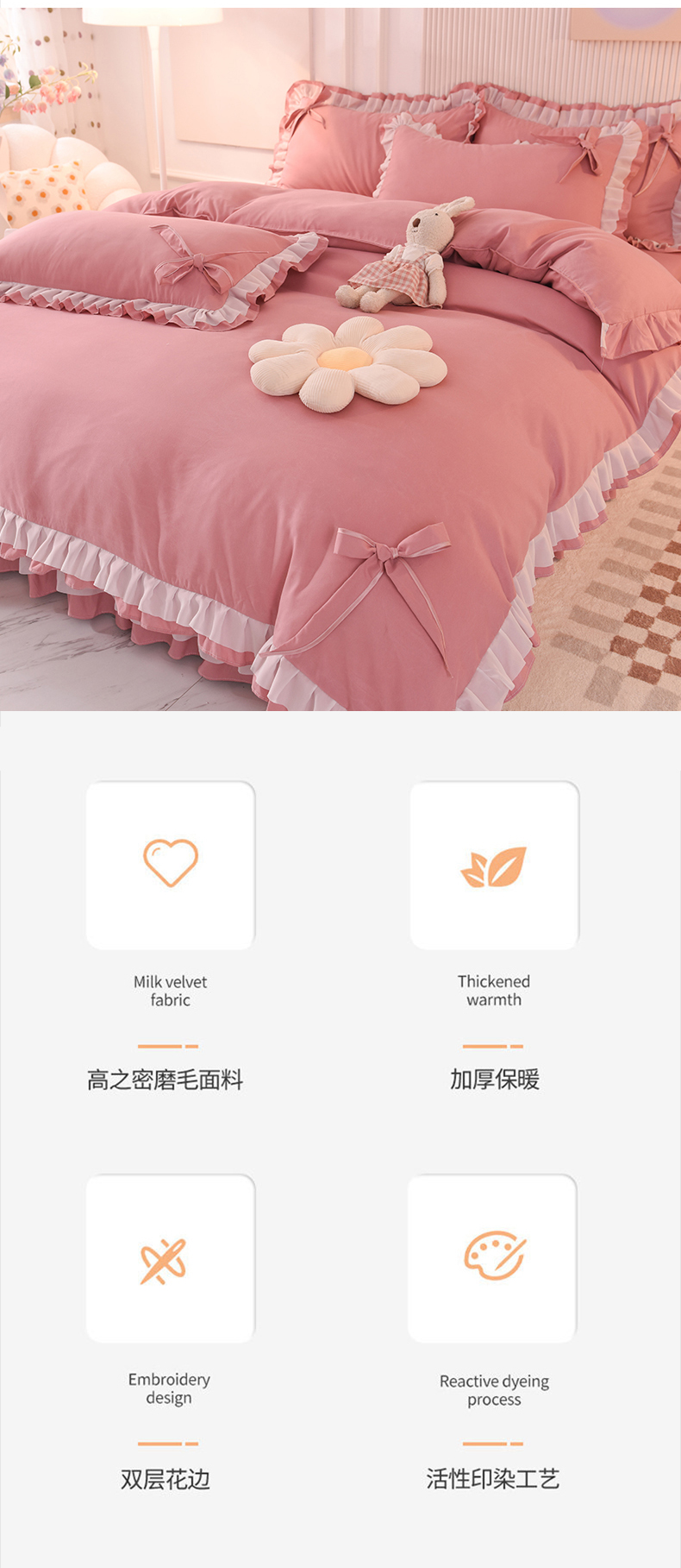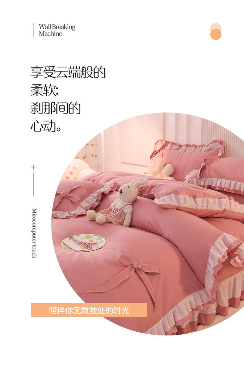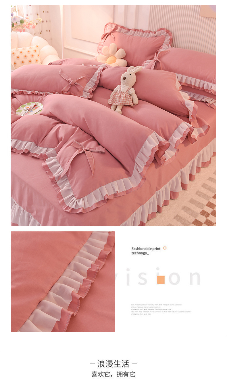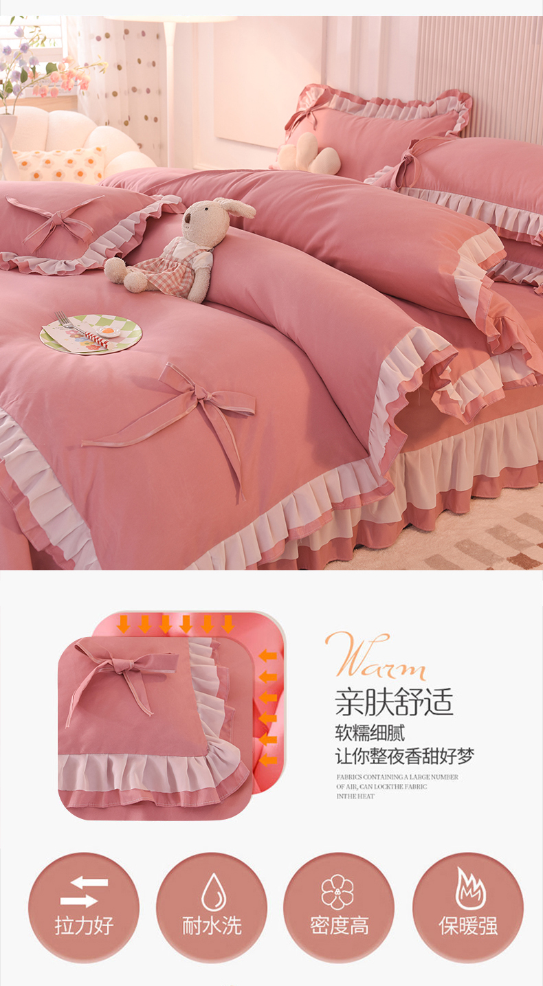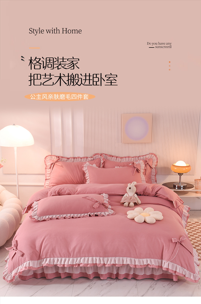 当前位置: 91家纺网 > 商品网购 > 床品套件 > 四件套 > 其它四件套 > 后庭寝室 2025新款公主风亲肤磨毛蝴蝶结四件套-爱巢 爱巢-豆沙