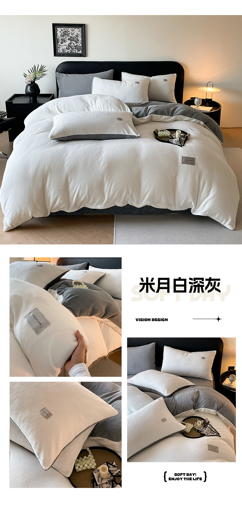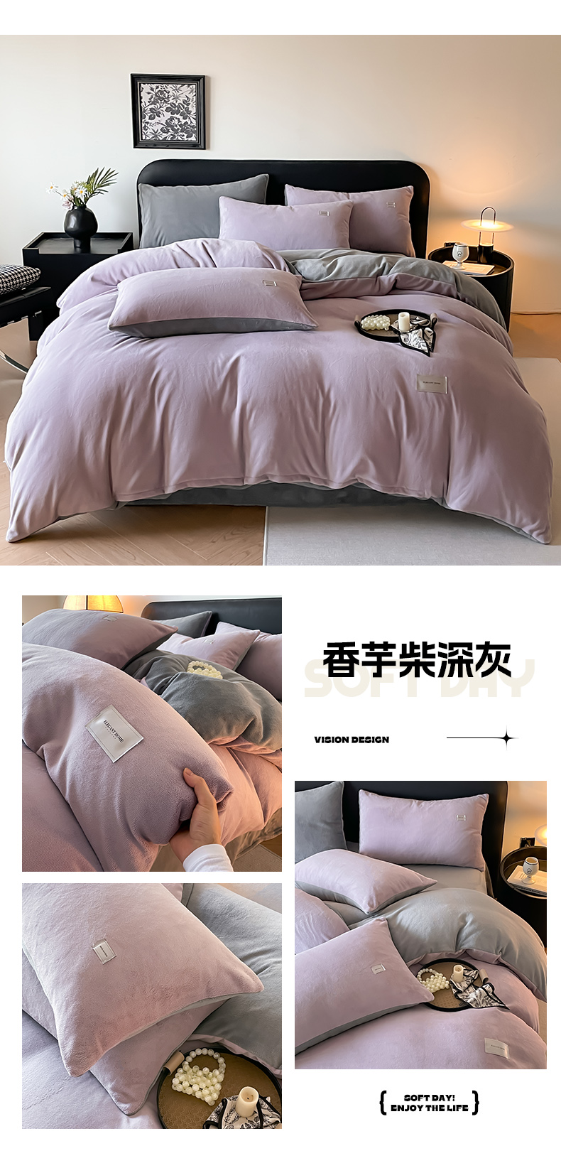 当前位置: 91家纺网 > 商品网购 > 床品套件 > 四件套 > 牛奶绒四件套 > ab家纺 2025新款保暖舒适纯色牛奶绒四件套 米月白香芋紫