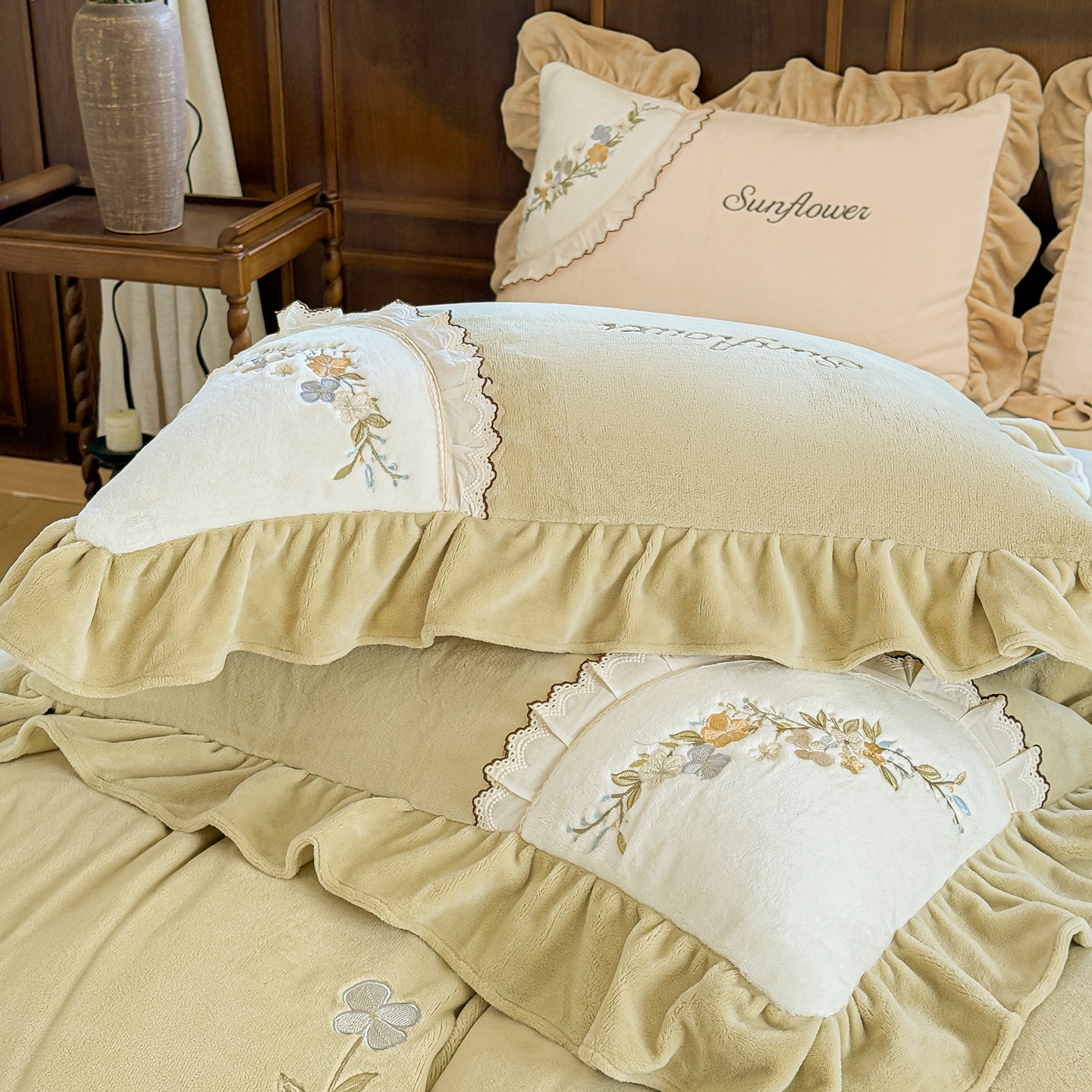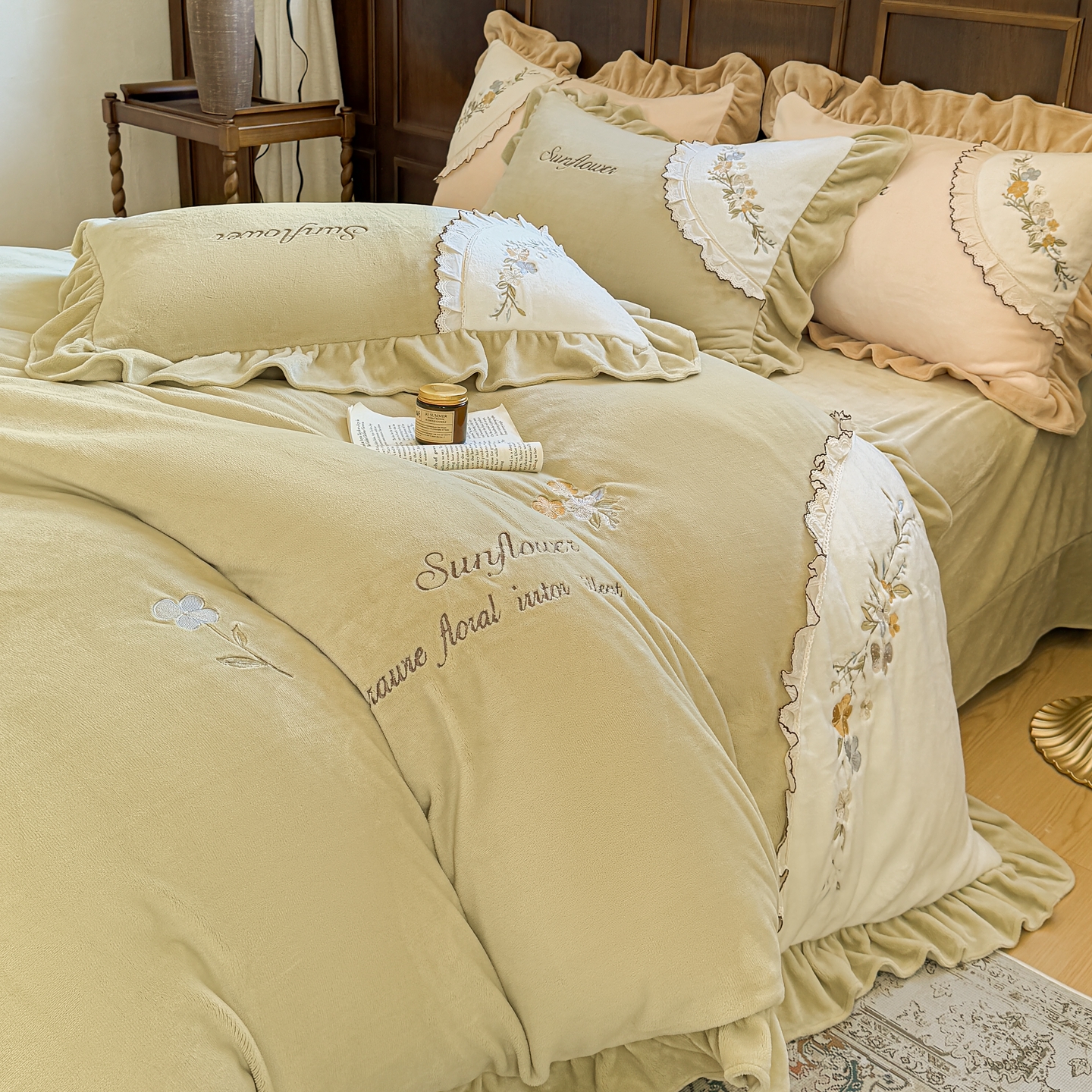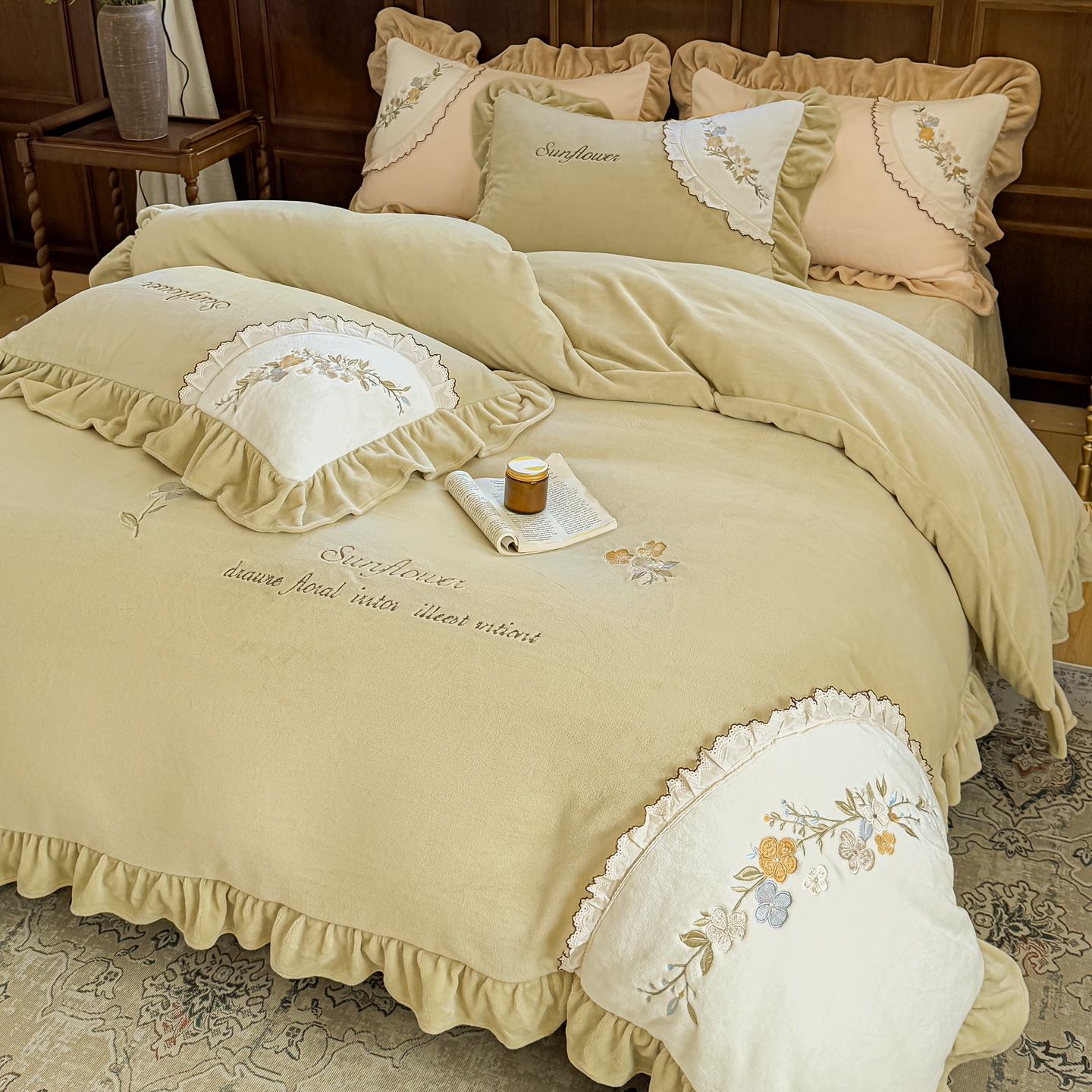 (总)阿那亚 2025新款加厚煦暖绒牛奶绒四件套韩版花边四件套刺绣四件套,安娜卡其,繁华果绿,伊贝浅蓝,伊贝米驼,伊贝果绿,繁华奶白,繁华粉,安娜奶白