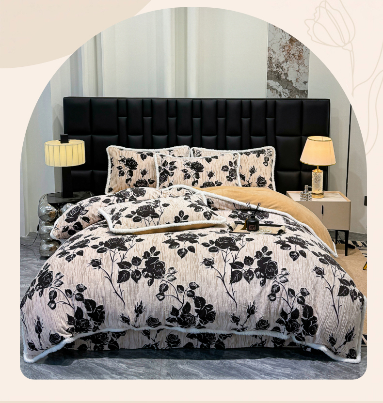 当前位置: 91家纺网 > 商品网购 > 床品套件 > 四件套 > 牛奶绒四件套 > 鹿辉家居(原吉欧力) 2025新款牛奶绒8.5斤立体雕花兔毛绒包边四件套 北欧经典