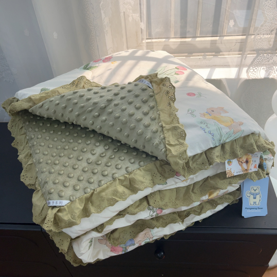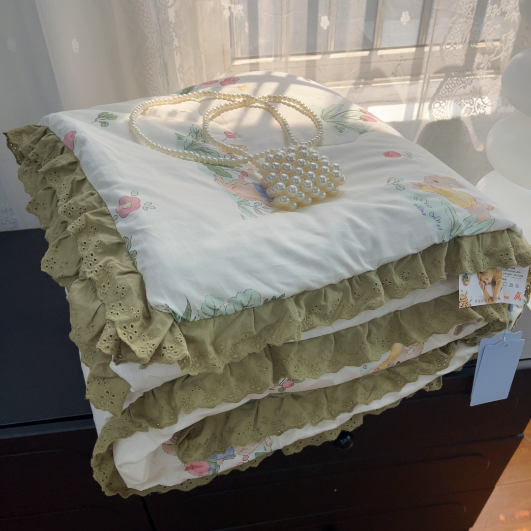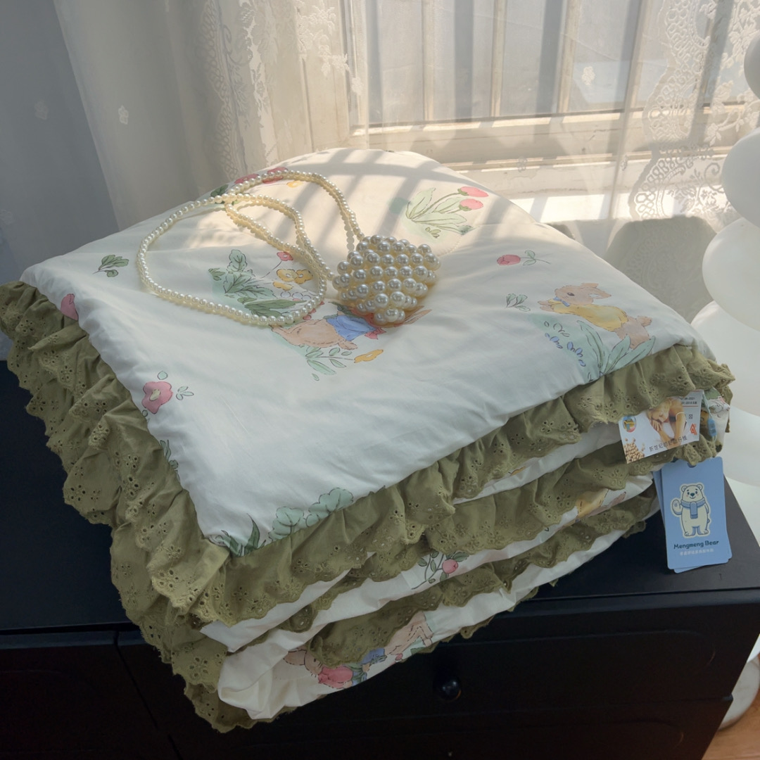 暖居 2025新款纯棉花边款春秋豆豆被四季通用 幸运兔