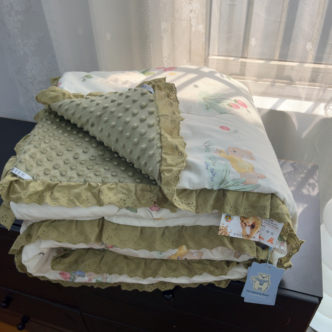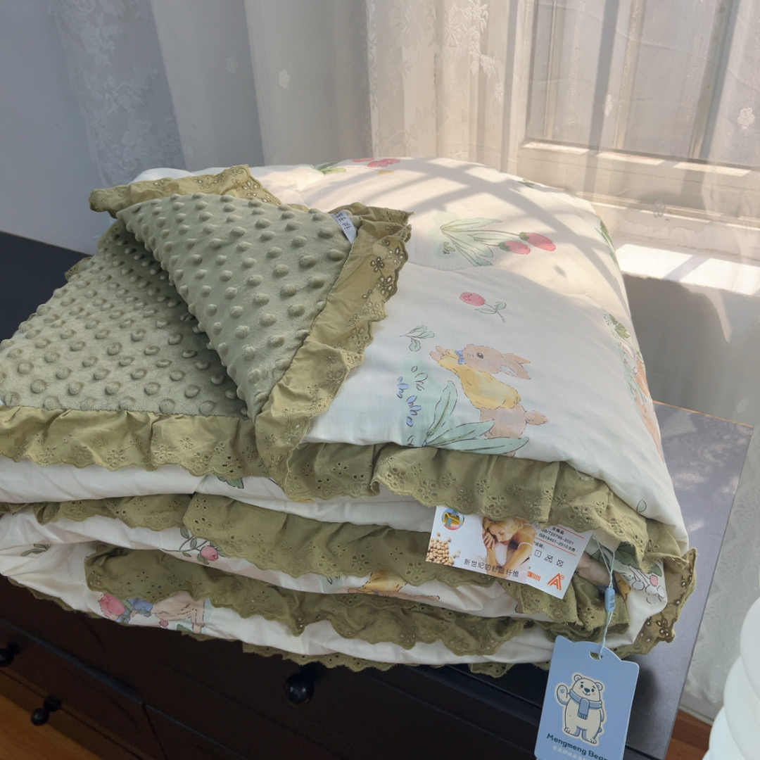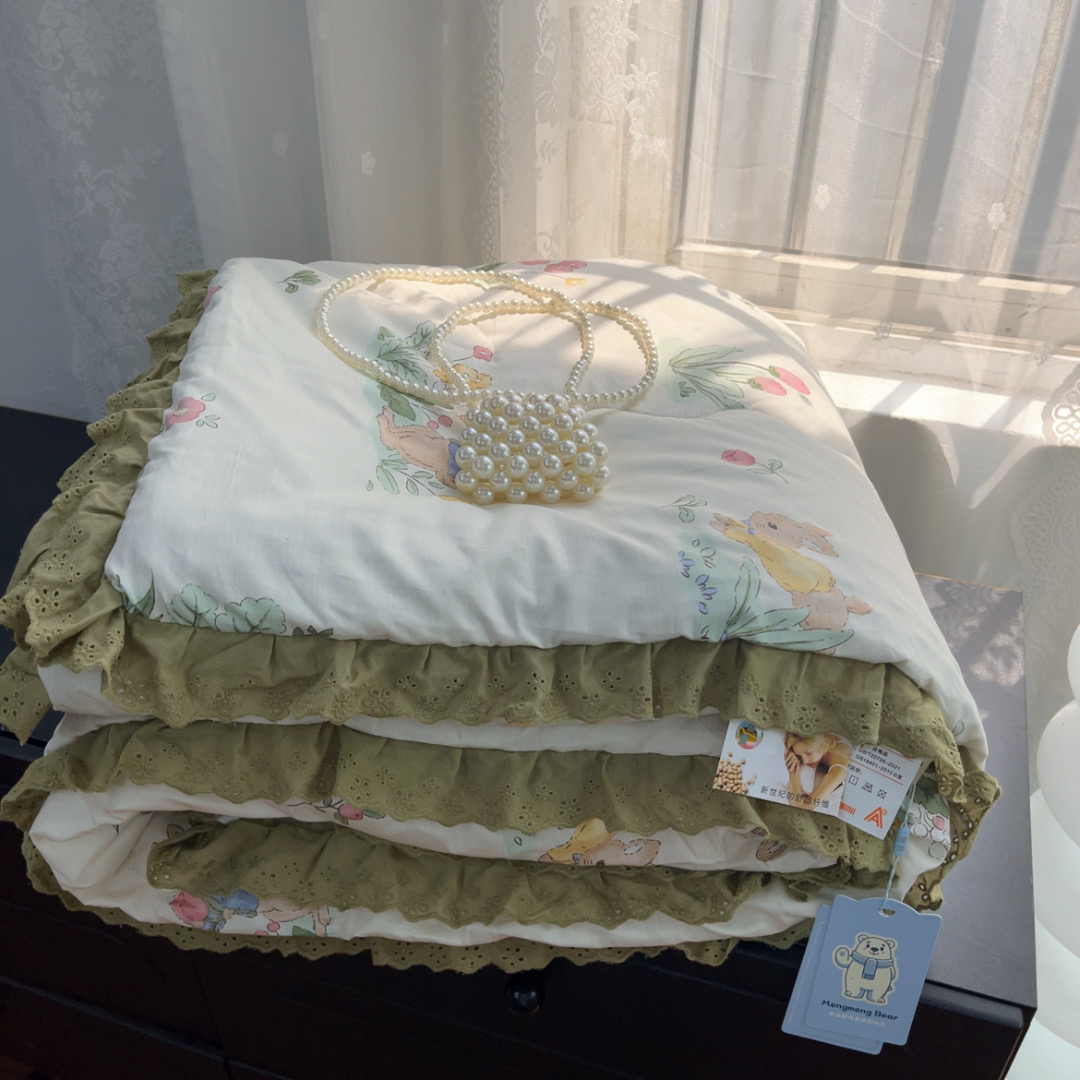商品名称:暖居 2025新款纯棉花边款春秋豆豆被四季通用 幸运兔
