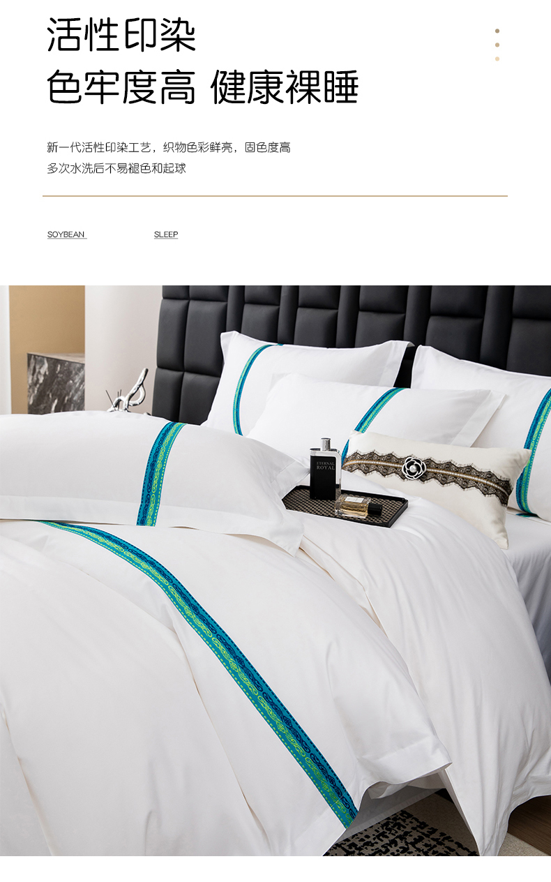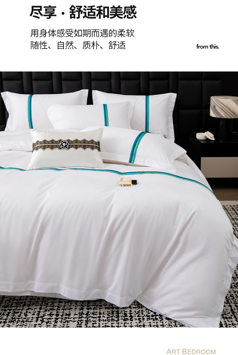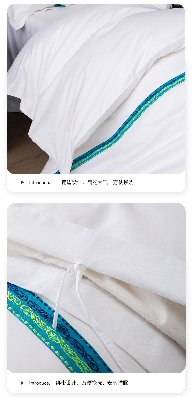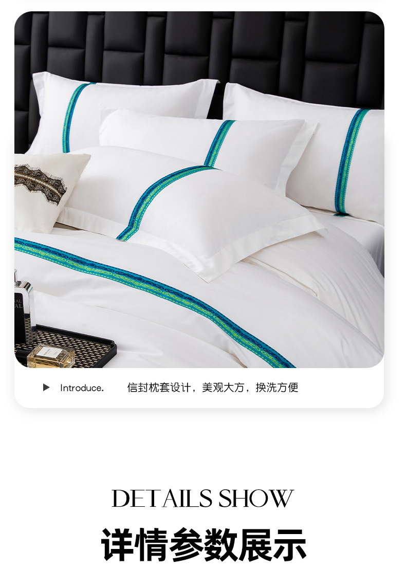 当前位置: 91家纺网 > 商品网购 > 床品套件 > 四件套 > 其它四件套 > 锦兴酒店布草 2025新款高支高密民宿酒店织带款四件套 青蓝