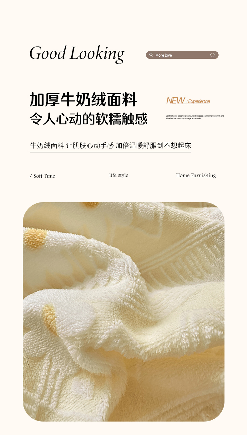 商品名称:娜娜 2025新款高克重牛奶绒百花齐放系列单品被套 百花齐放-奶昔黄