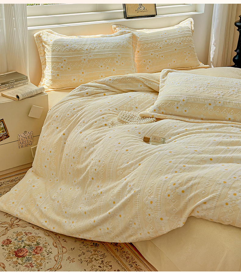(总)娜娜 2025新款雕花牛奶绒烂花小翠菊单床笠系列,繁花-淡雅粉,繁花-淡雅黄,繁花-淡雅蓝