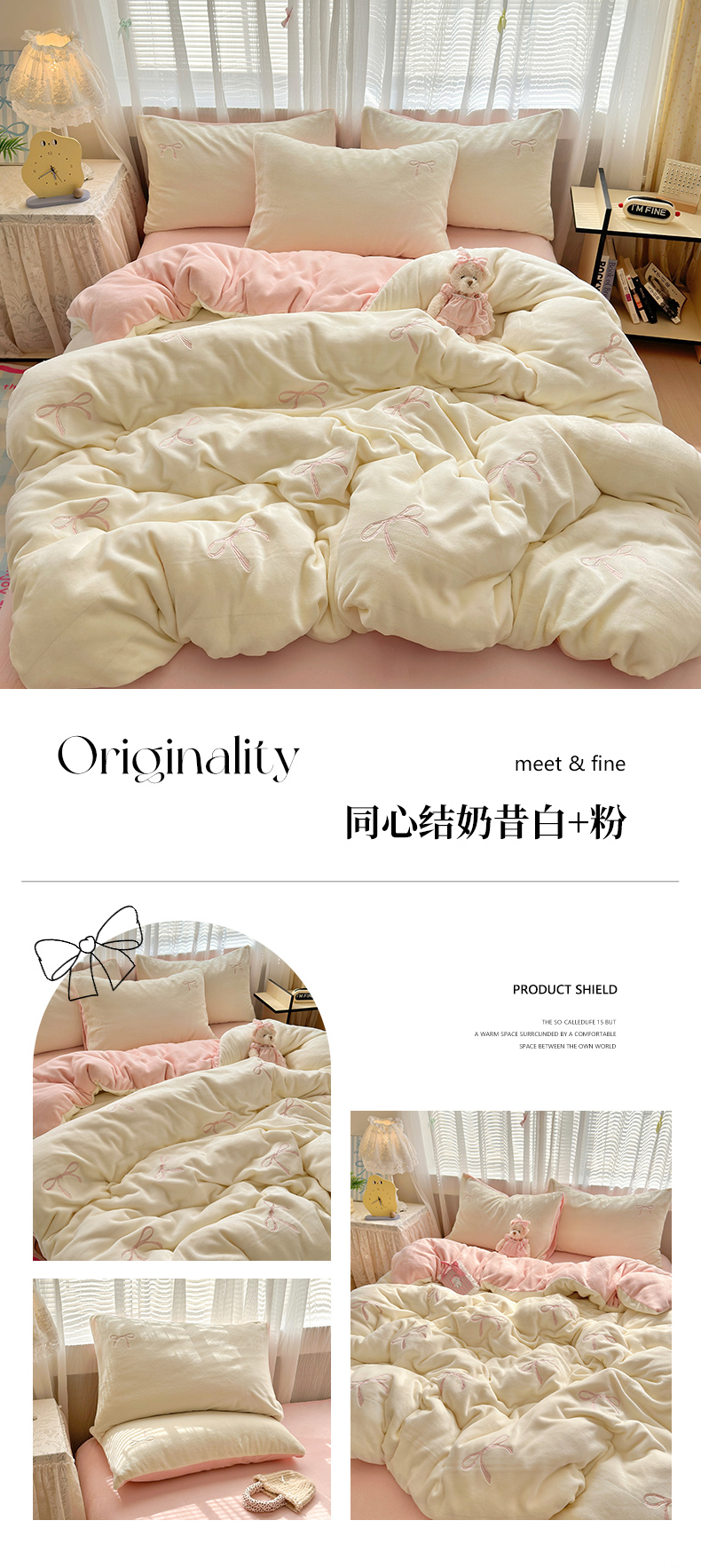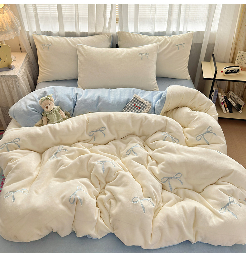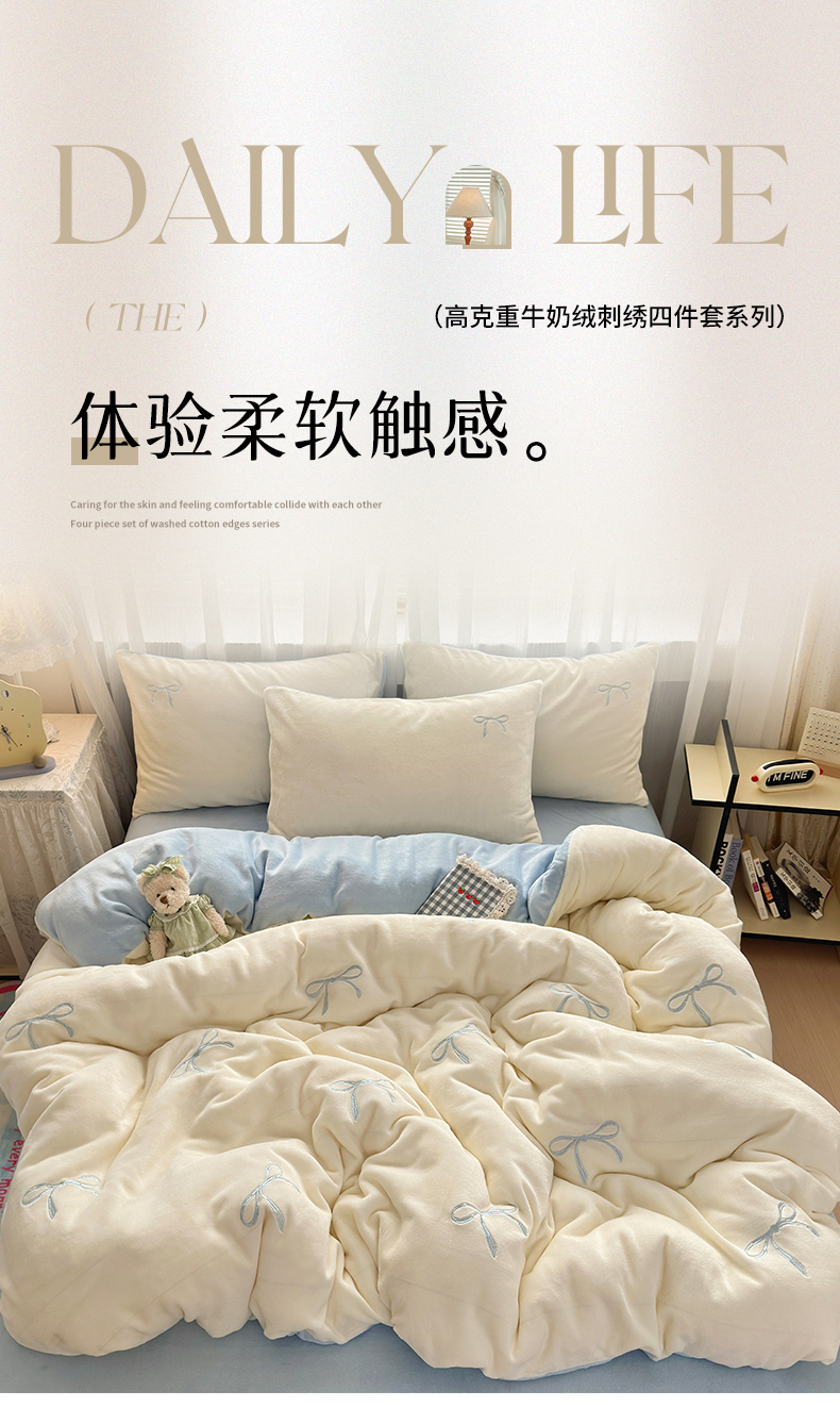 当前位置: 91家纺网 > 商品网购 > 床品套件 > 四件套 > 牛奶绒四件套 > 娜娜 2025新款高克重牛奶绒同心结系列四件套 同心结奶昔白+天空蓝