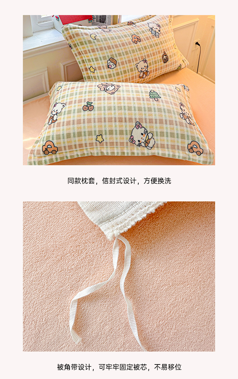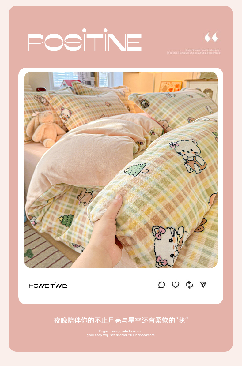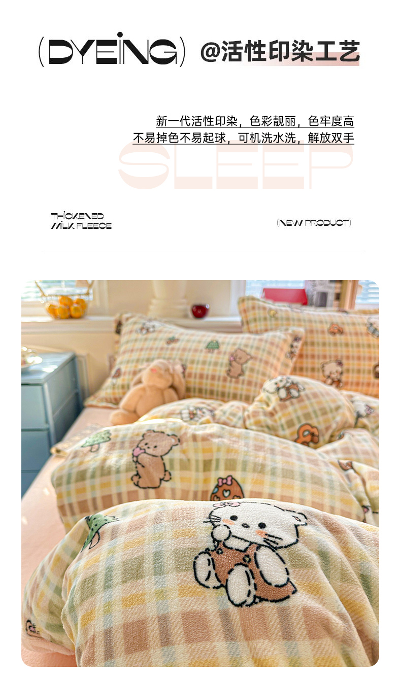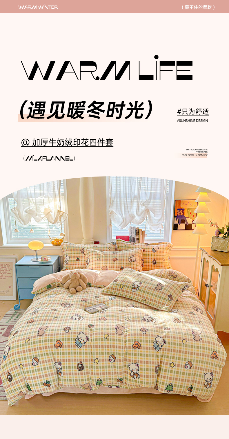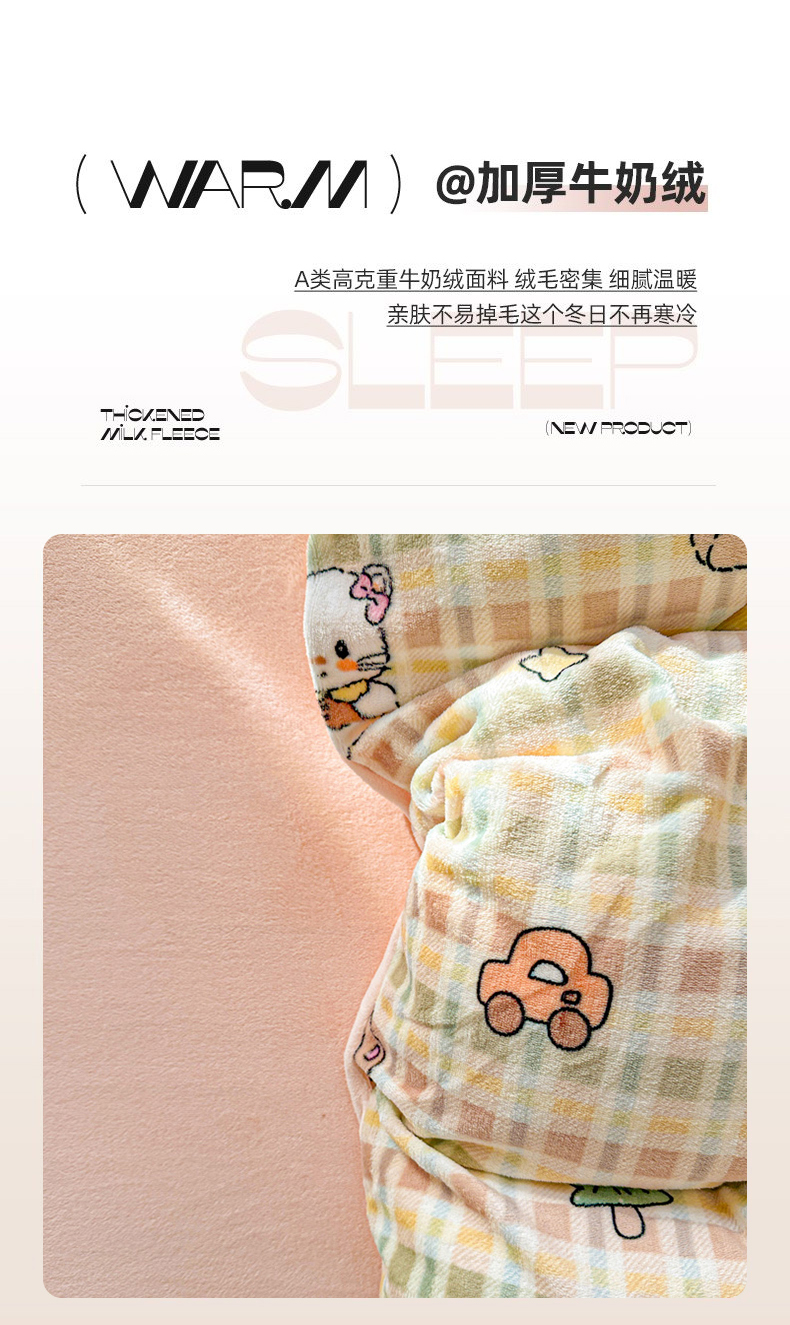 商品名称:卡普家居 2025新款加厚保暖牛奶绒系列--四件套 凯蒂乐园