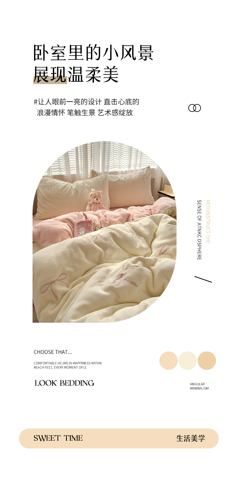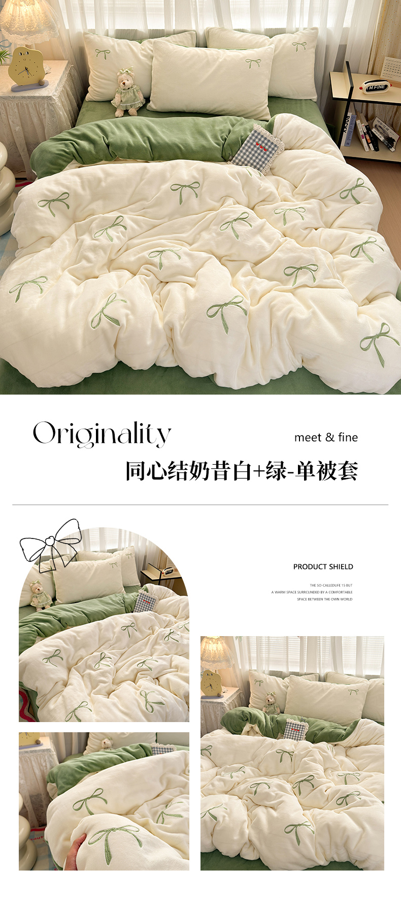 商品名称:娜娜 2025新款高克重牛奶绒同心结系列单品被套 同心结奶昔白+粉