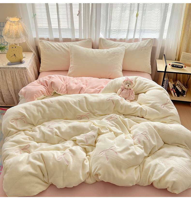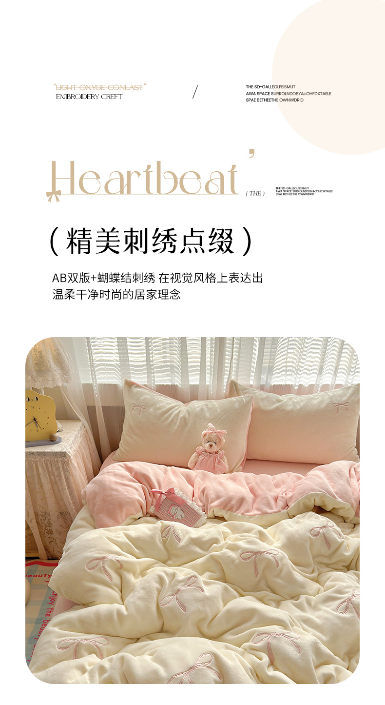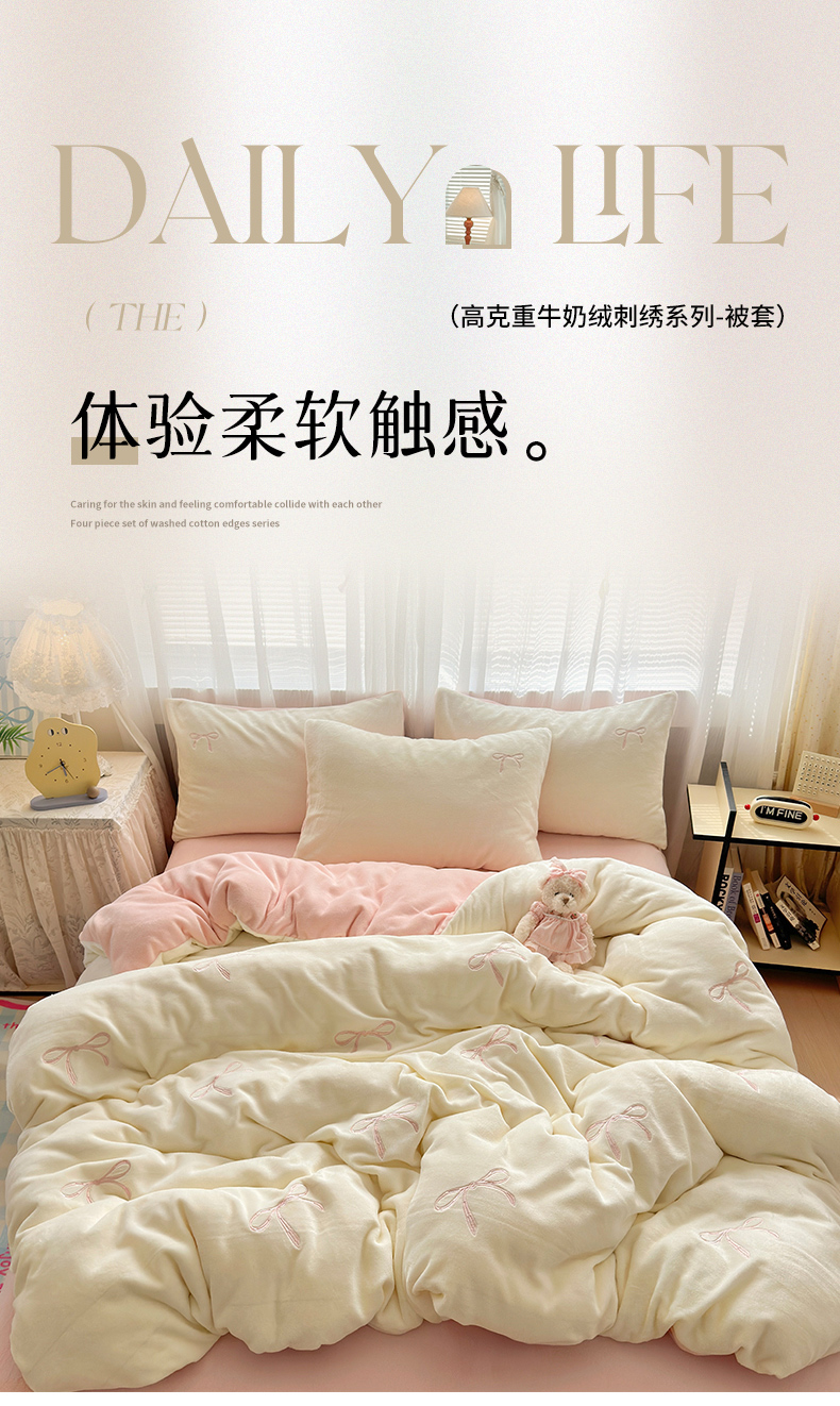 娜娜 2025新款高克重牛奶绒同心结系列单品被套 同心结奶昔白+粉