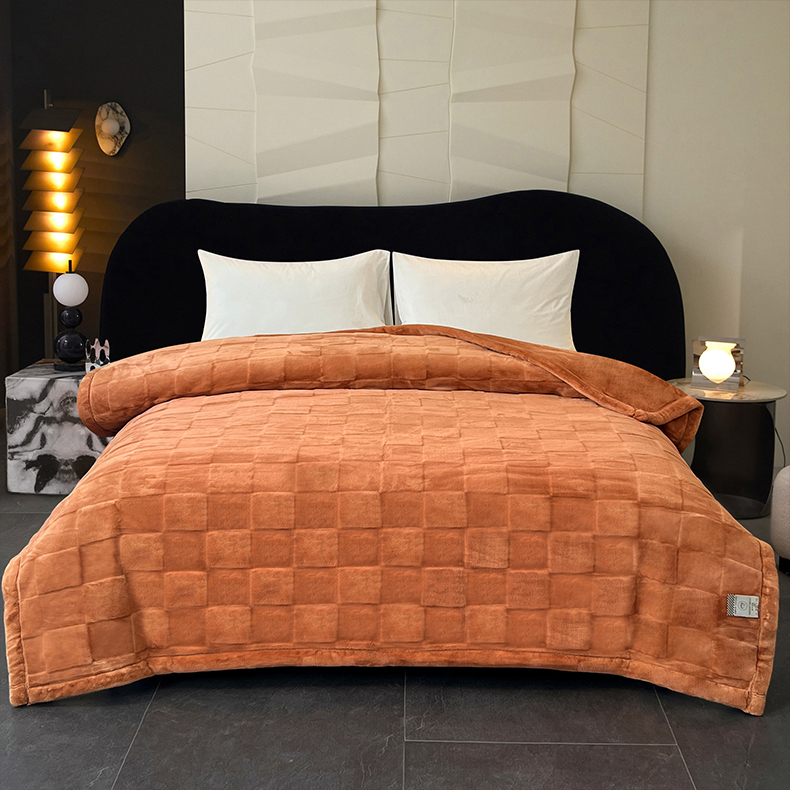 凯轩毛毯网销专供 2025新款方格精品婚庆云毯毛毯 方格-落日橘