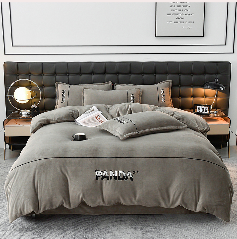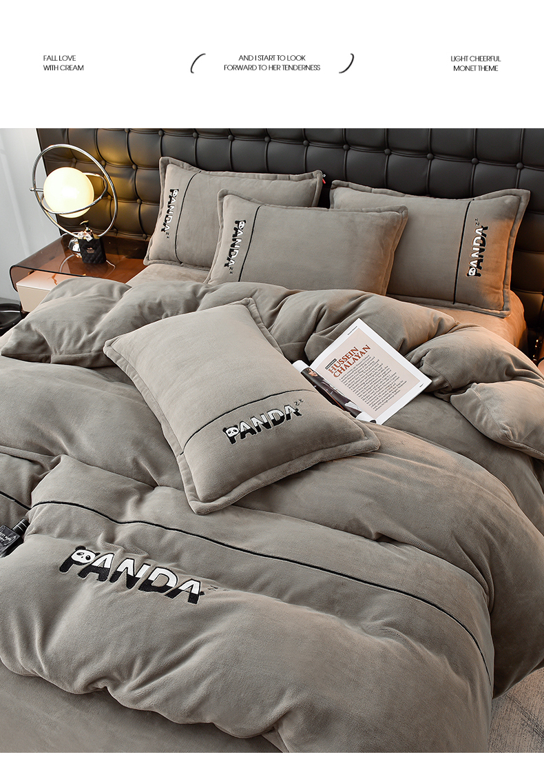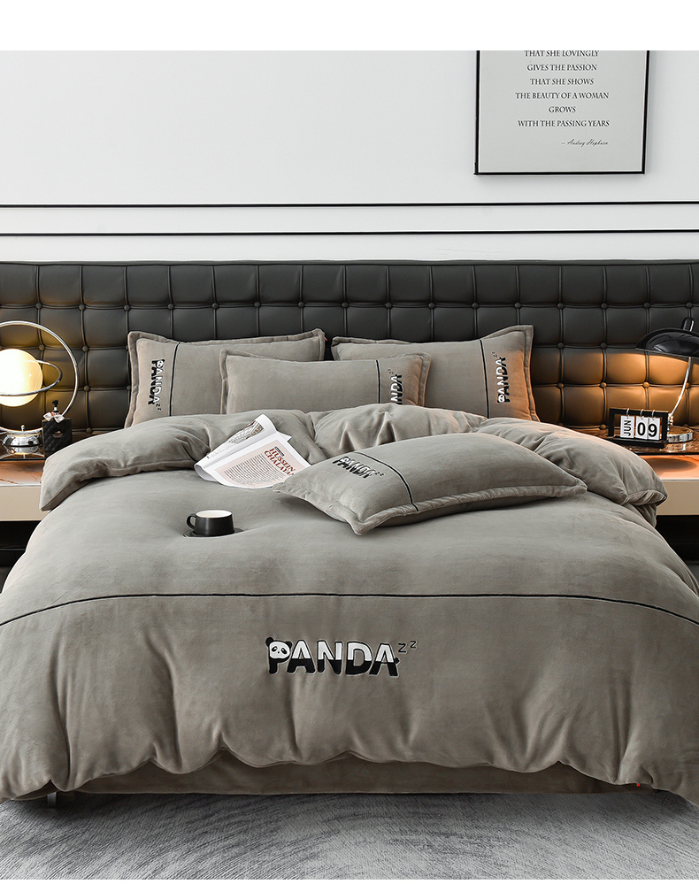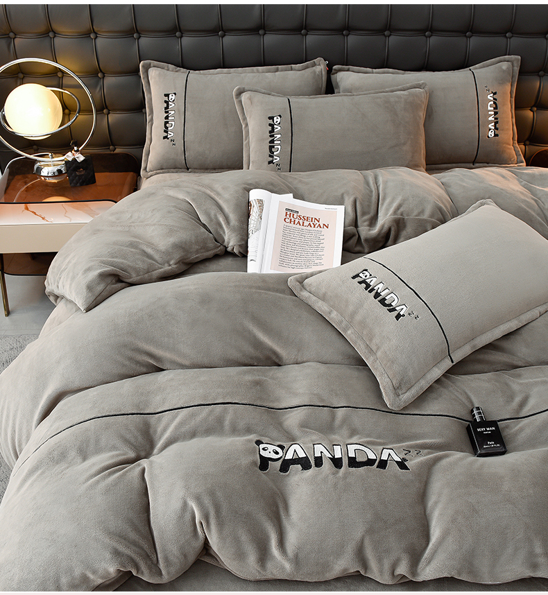 炫拼家纺 2025新款小熊猫刺绣款高克重牛奶绒四件套 小熊猫-摩登灰