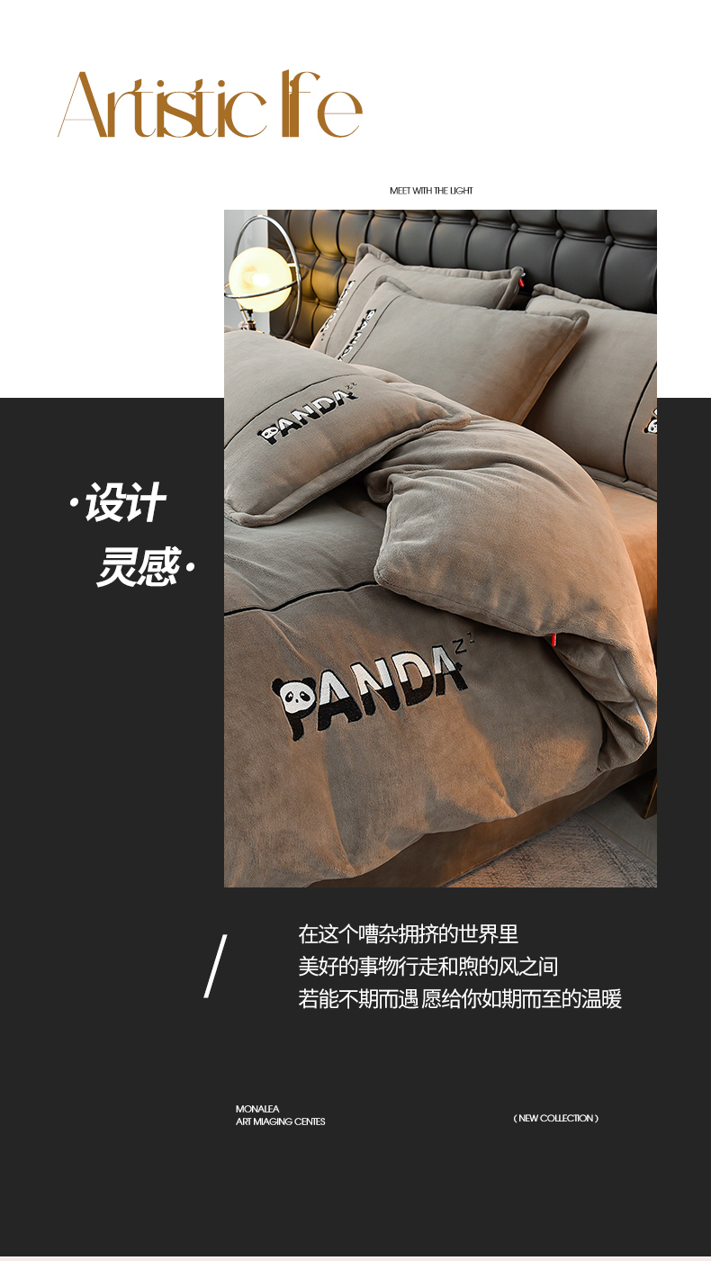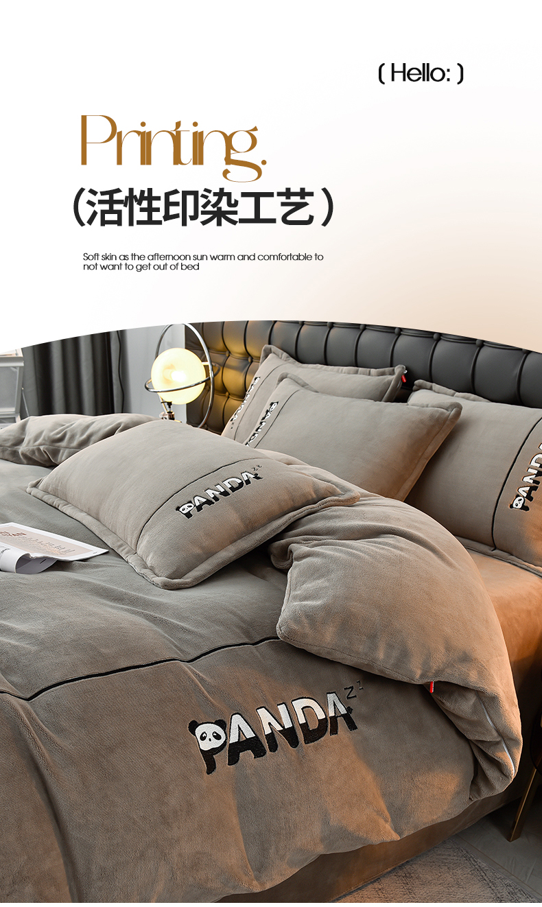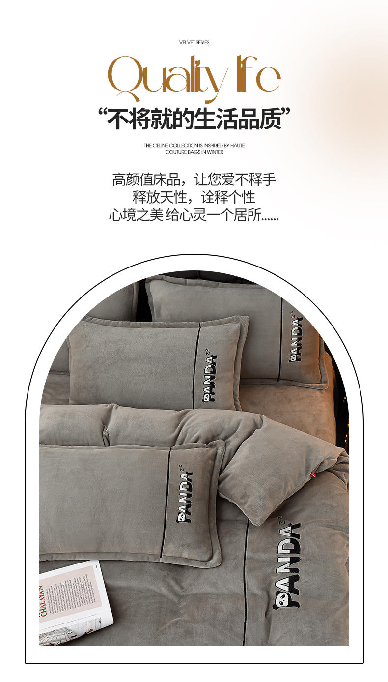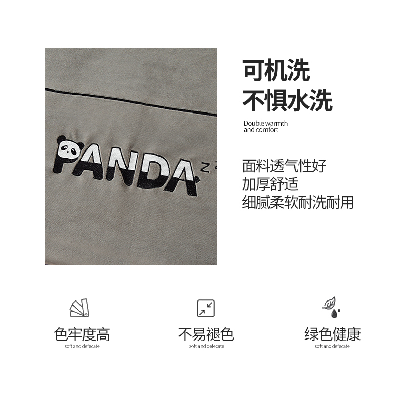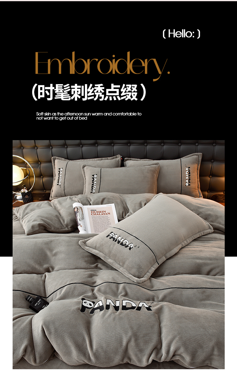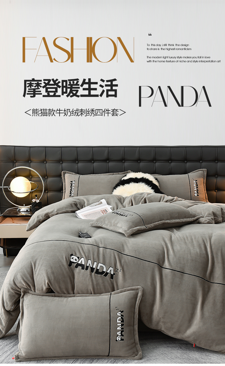 商品名称:炫拼家纺 2025新款小熊猫刺绣款高克重牛奶绒四件套 小熊猫-摩登灰