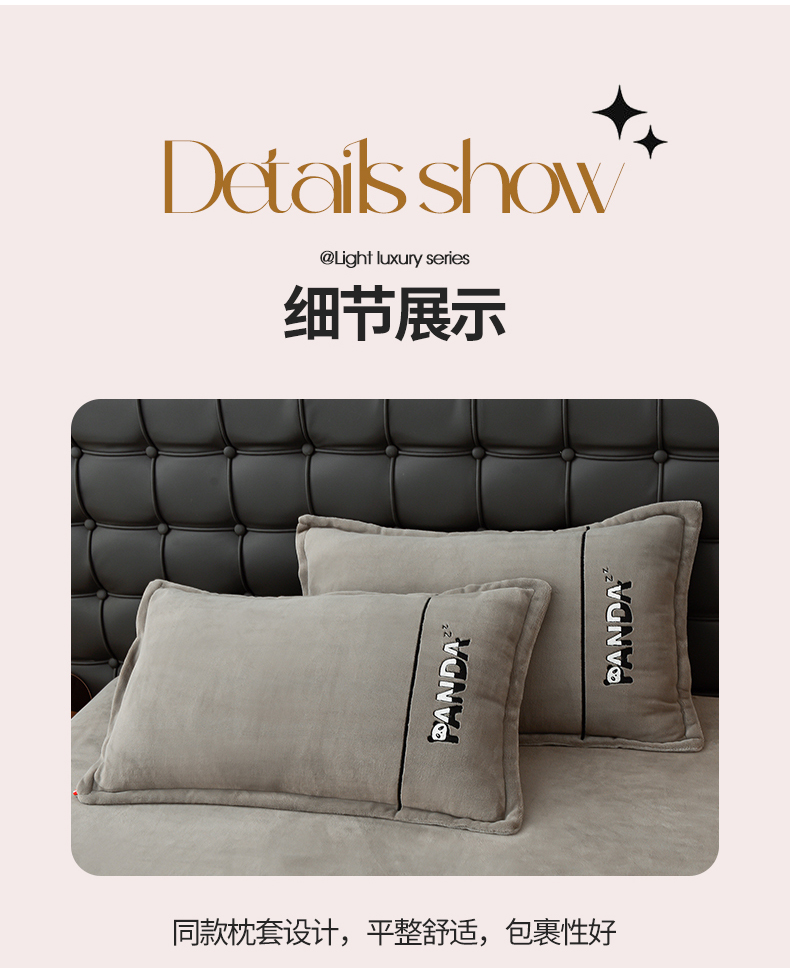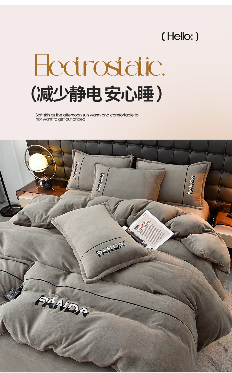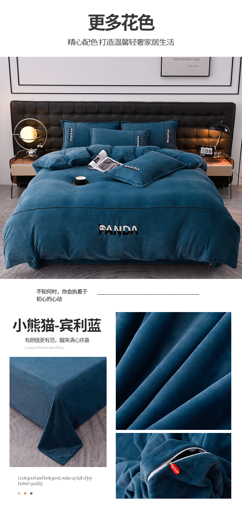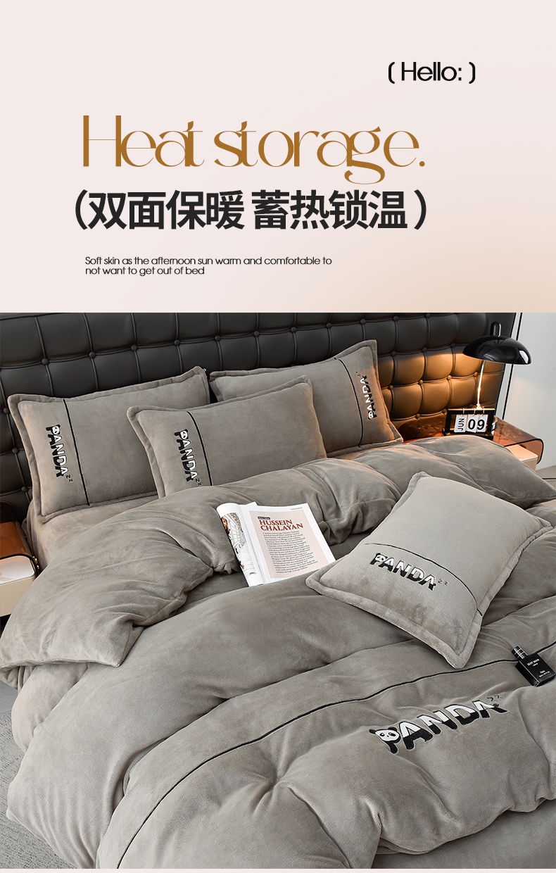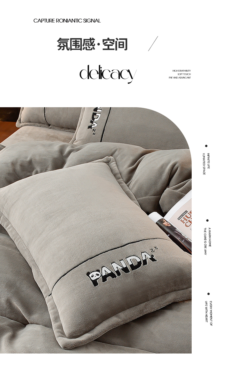 商品名称:炫拼家纺 2025新款小熊猫刺绣款高克重牛奶绒四件套 小熊猫-摩登灰