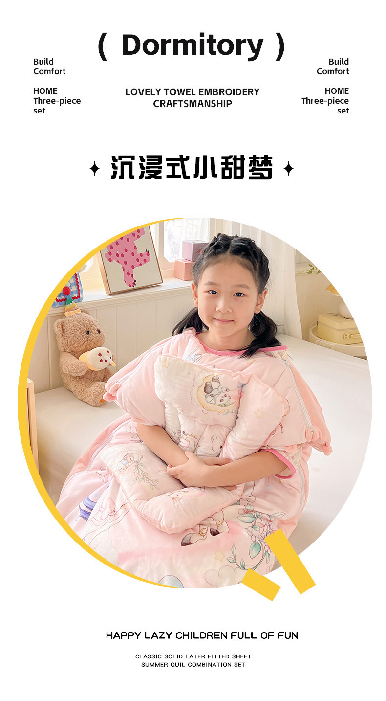 (总)沁童 2024新款儿童针织棉加豆豆绒睡袋,彩虹恐龙,彩虹鸭,黛露露,粉色小熊,恐龙星球,快乐小兔,太空恐龙,小奶狗,小熊工程车,美女城堡