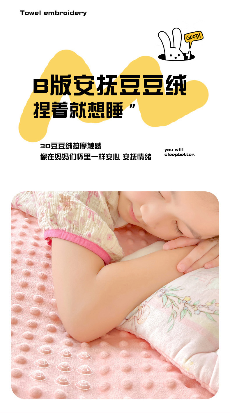 (总)沁童儿童用品店 2024新款水洗双层纱儿童豆豆被被子被芯,粉色兔子,恐龙树林,蓝色小熊,糖果猫咪,条纹小熊,兔子乖乖