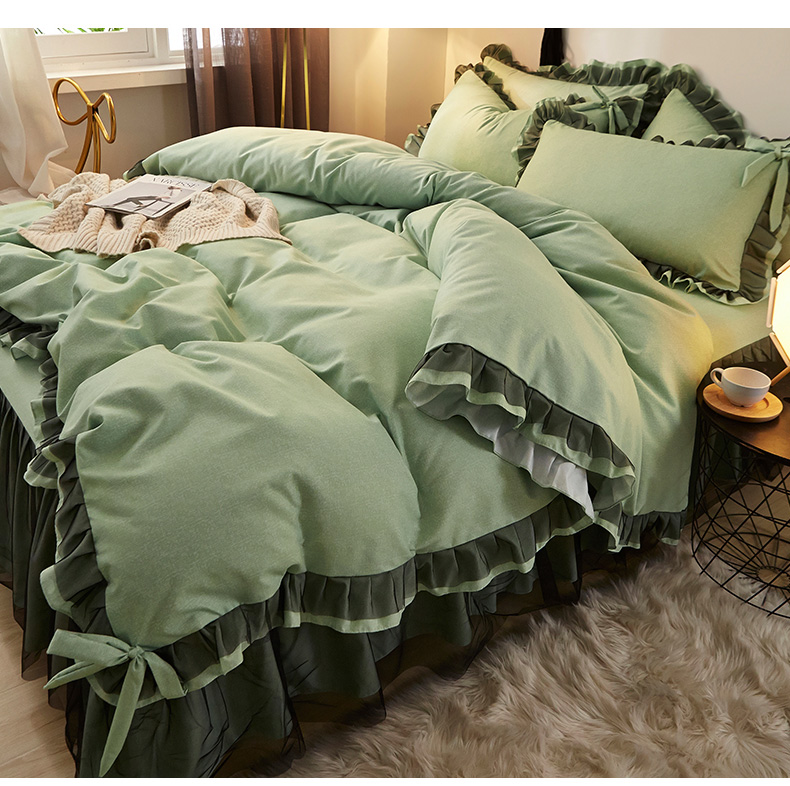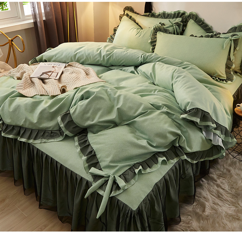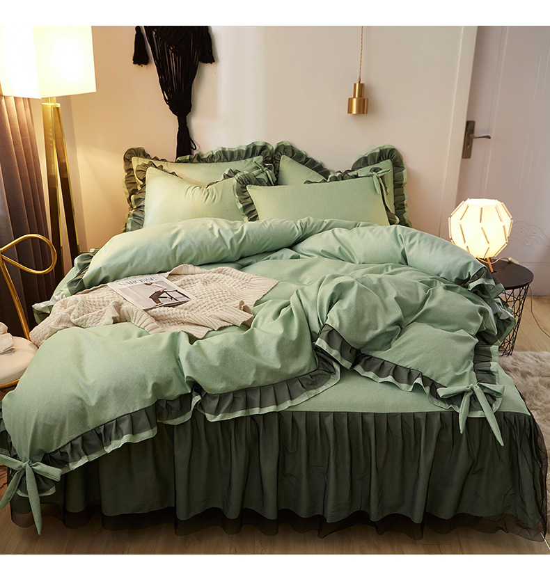 后庭寝室 2025新款纯色磨毛黑蕾丝四件套-秘密花园 秘密花园-橄榄绿