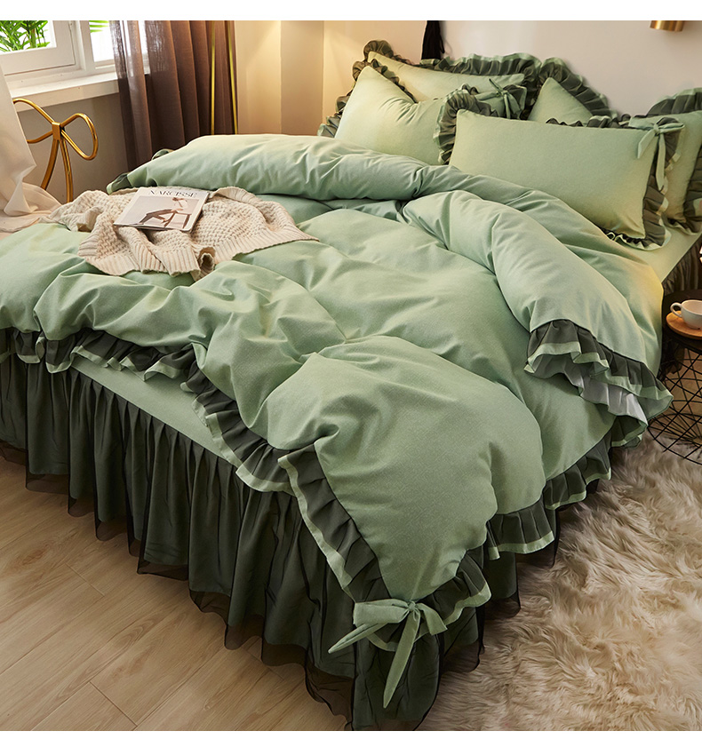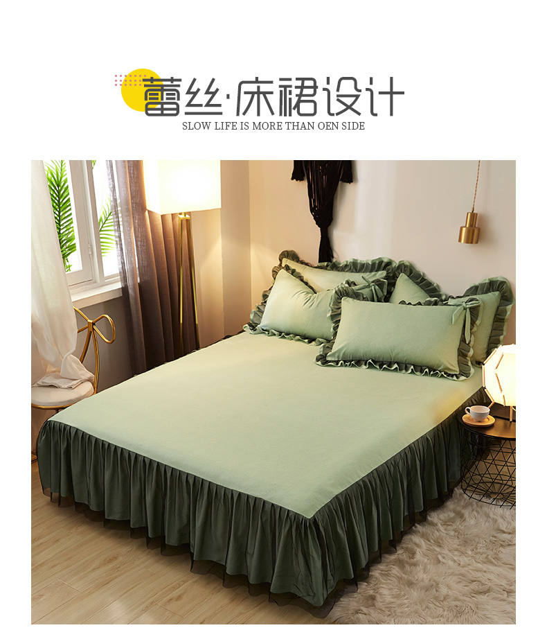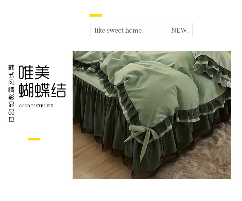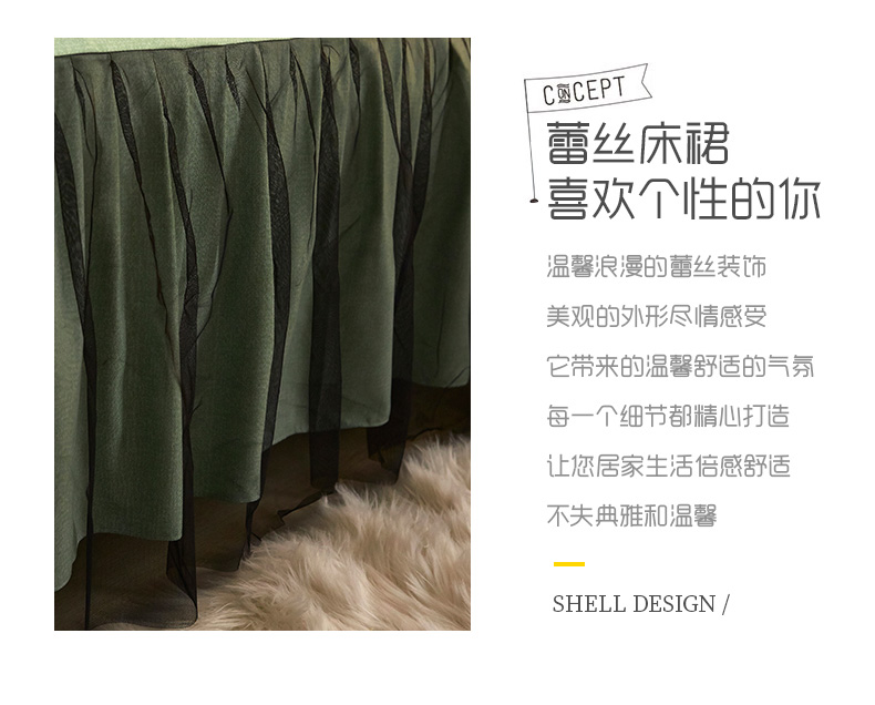 商品名称:后庭寝室 2025新款纯色磨毛黑蕾丝四件套-秘密花园 秘密花园-橄榄绿