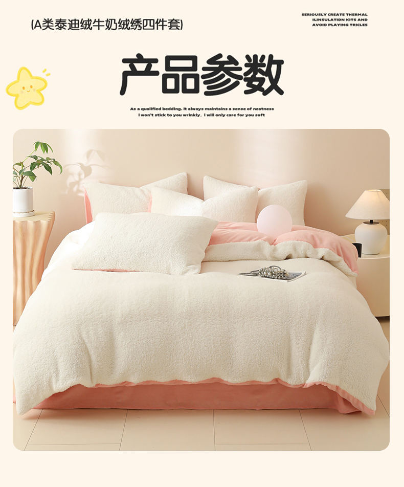 (总)眠博士 2025新款A类泰迪绒牛奶绒纯色四件套,泰迪绒-安妮白咖,泰迪绒-安妮蓝,泰迪绒-安妮咖,泰迪绒-安妮白粉,泰迪绒-安妮白黄,泰迪绒-安妮粉