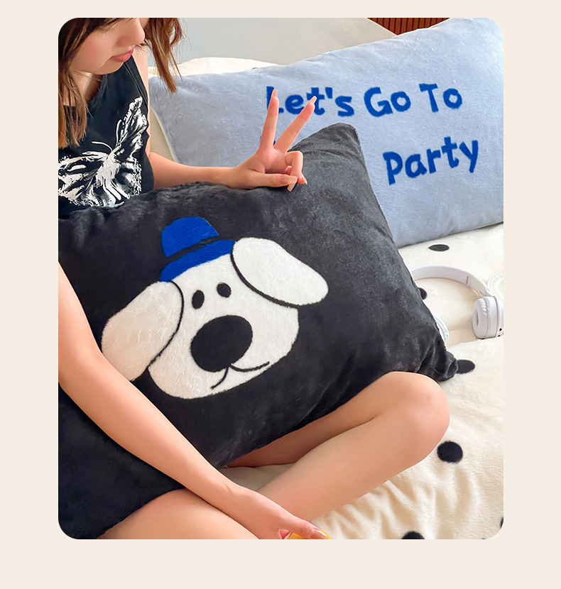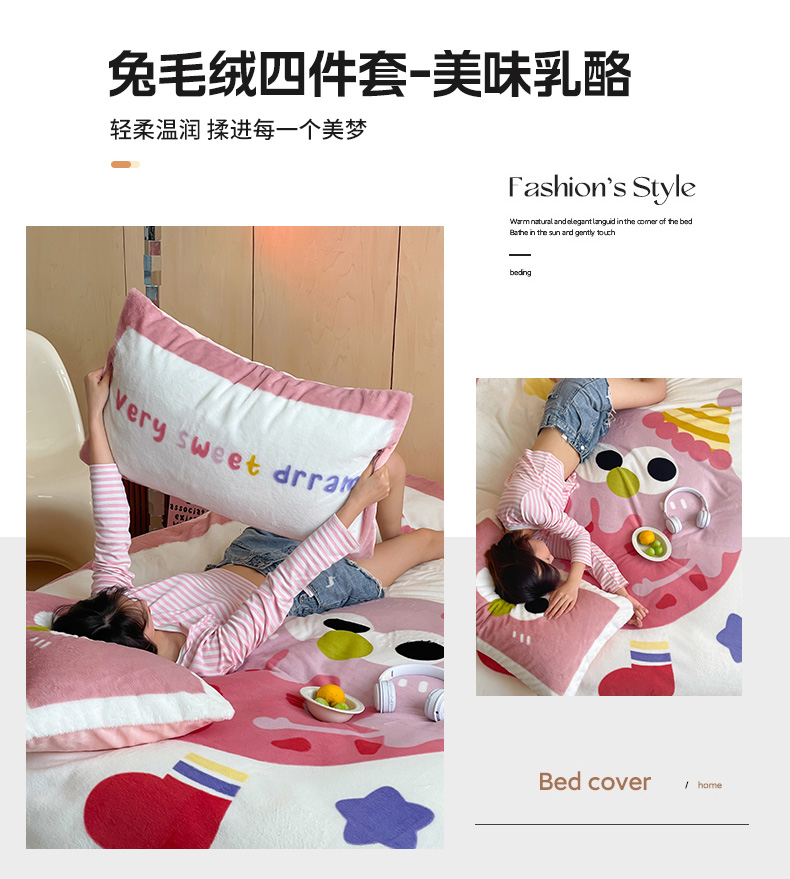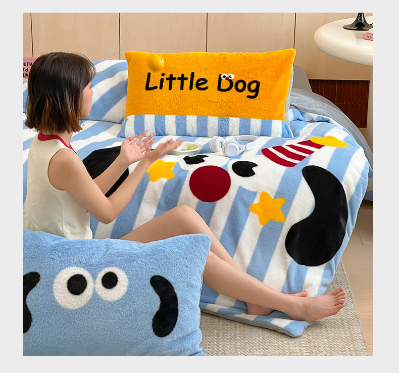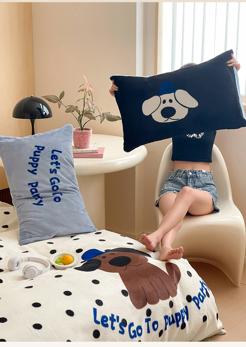 安哆啦家纺 2025新款兔毛绒大版卡通牛奶绒兔兔绒印花四件套 小狗点点