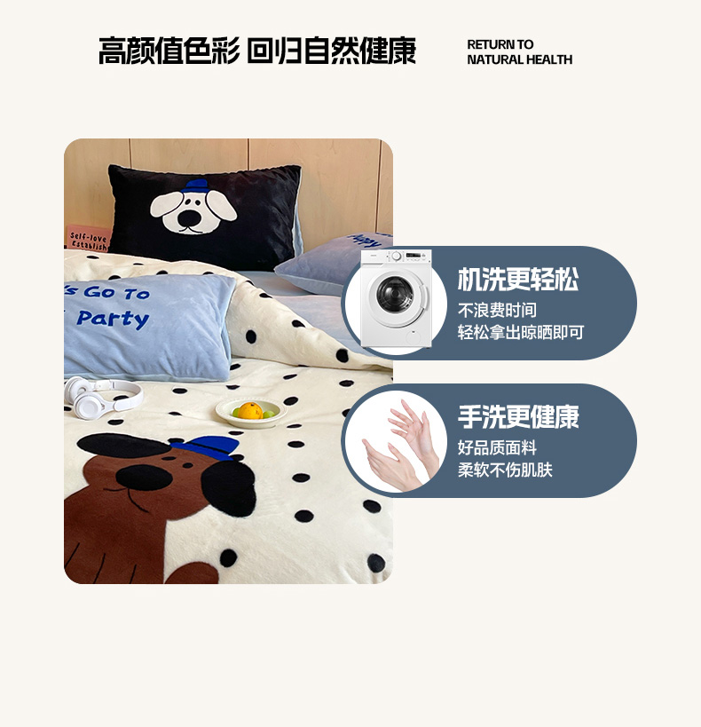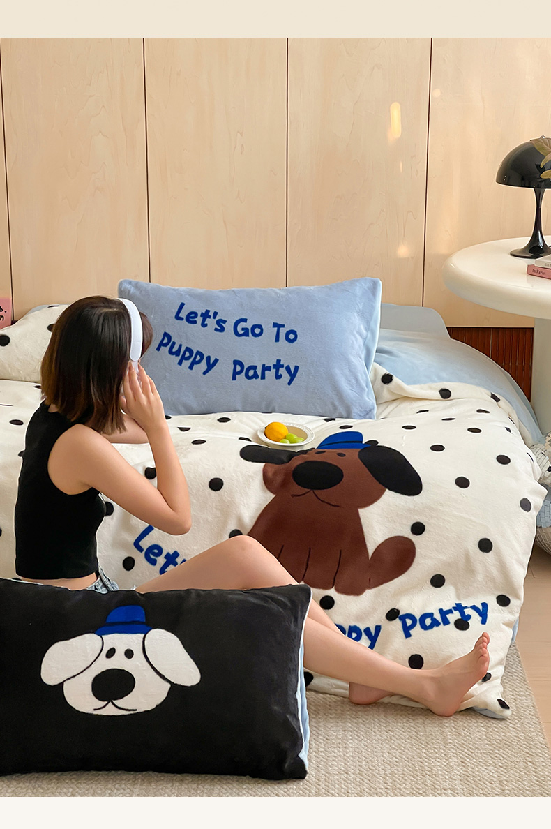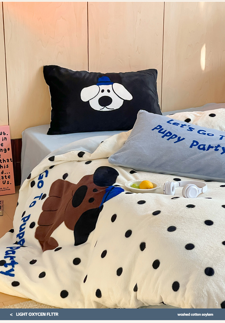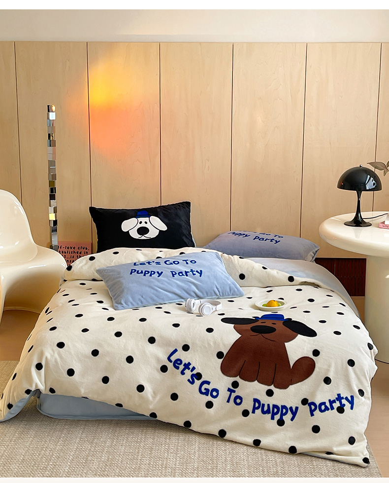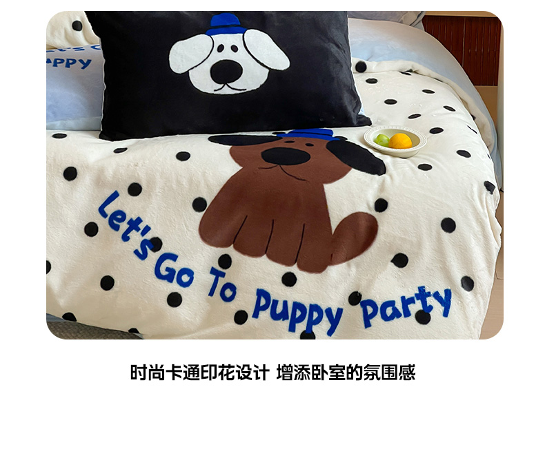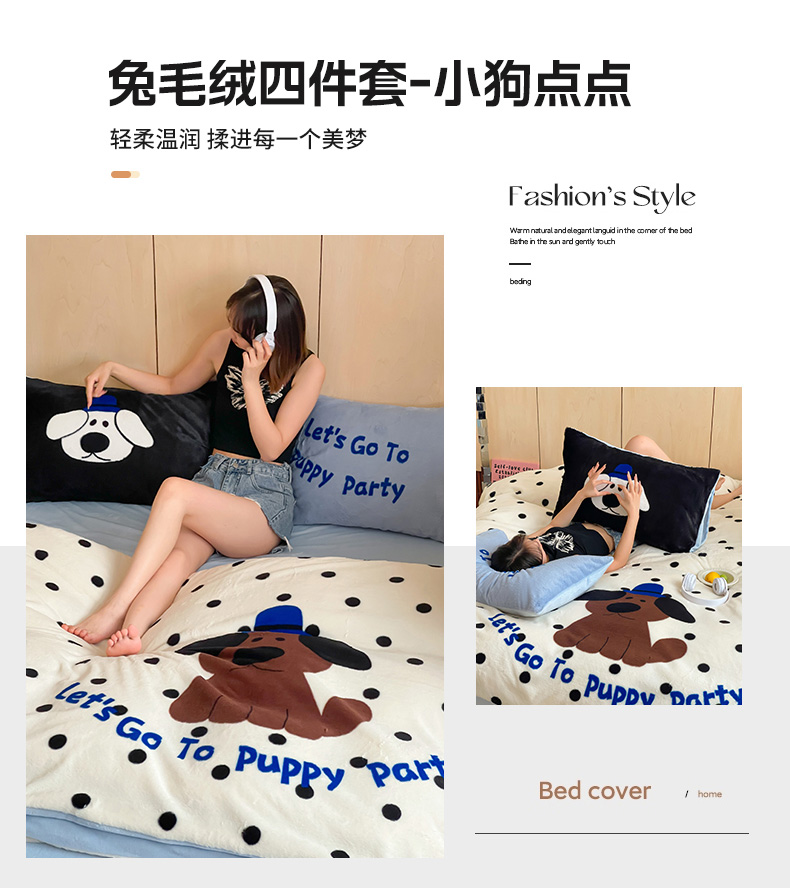 商品名称:安哆啦家纺 2025新款兔毛绒大版卡通牛奶绒兔兔绒印花四件套 小狗点点