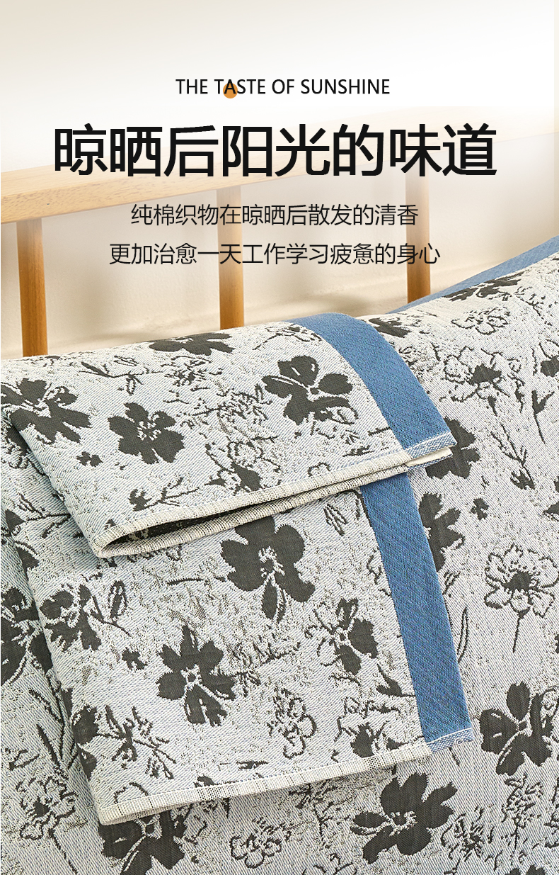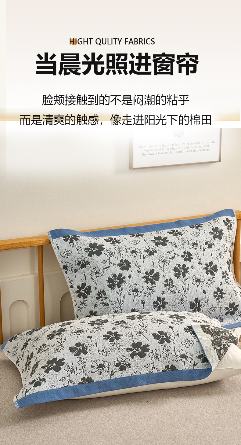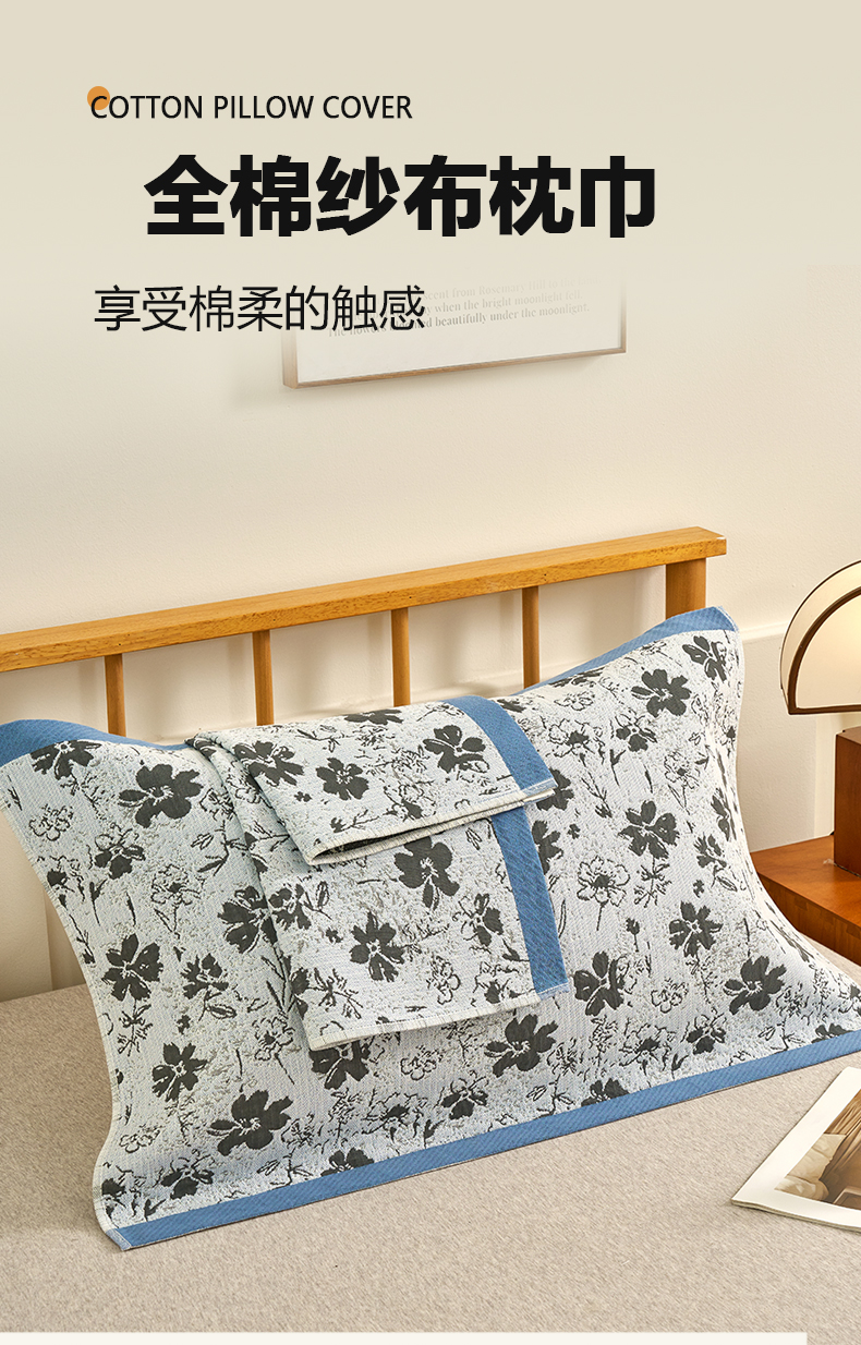 棠薇家纺 2025新款精梳棉六层纱单枕巾 枕巾单件 夕颜蓝